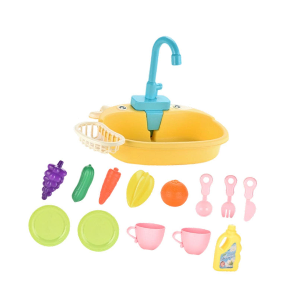 Maxbell Kitchen Sink Toys with Running Water Gifts Play Sink for Children Kids Girls Yellow