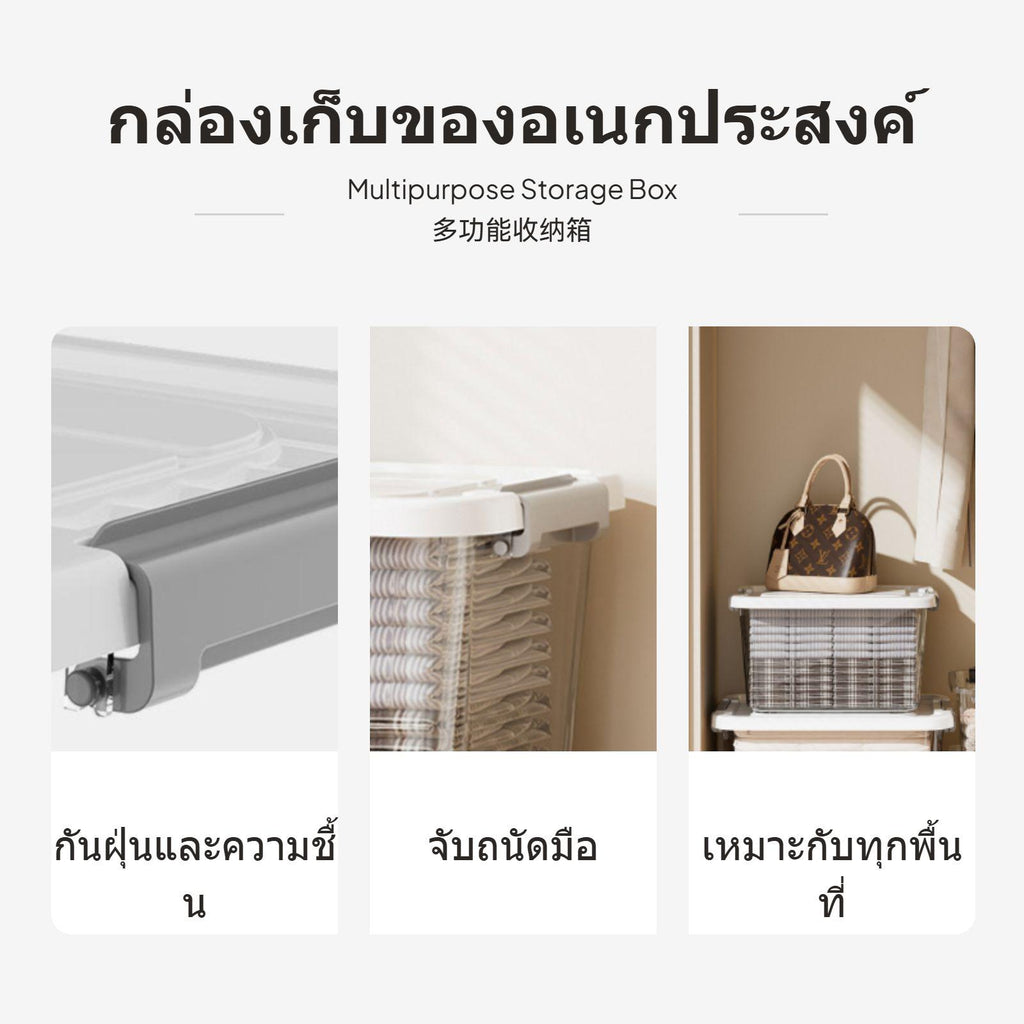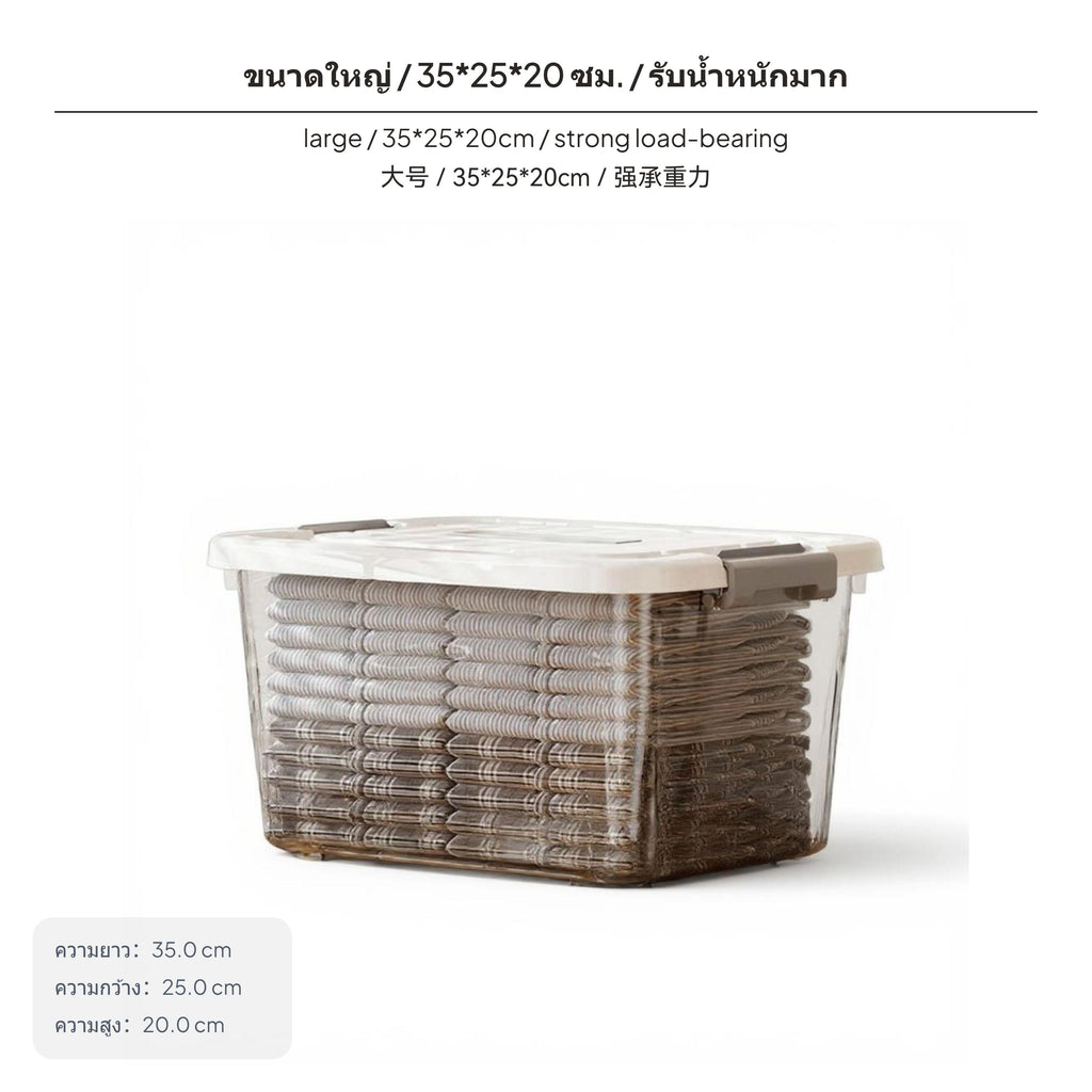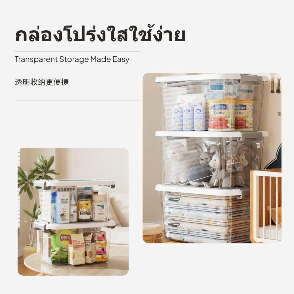 [Clear and Spacious Capacity] This large 25L transparent storage box offers ample space to organize clothes, toys, books, snacks, and other household items with ease.[Clear and Spacious Capacity] This large 25L transparent storage box offers ample space to organize clothes, toys, books, snacks, and other household items with ease.[debris-resistantproof Flip Lid Design] The flip lid design ensures your items are protected from debris-resistant and moisture, making it suitable for storing in any room of your home.[Convenient Handle Design] A sturdy gray handle allows for easy portability, letting you move the box between rooms or floors without effort.[Multi-purpose Home Organizer] With its minimalist transparent and ivory design, this box complements your bedroom, living room, or storage area, keeping your space tidy and organized.Specification: