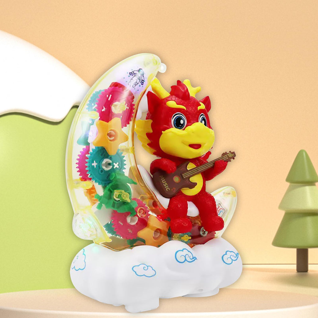 【Design】This electric toys is designed with a transparent moon shaped shell. You can clearly see that the gears of different colors inside the moon are running. The dragon was holding the guitar on the moon and the clouds.