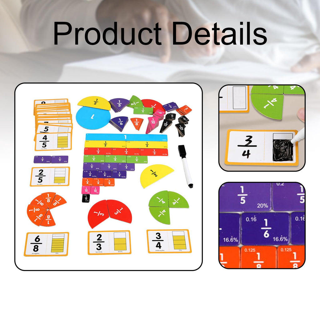 【Interactive Learning Tool】: This magnetic fraction learning board is designed to engage young minds in hands on math exploration. With bright colors and full, easy to handle pieces, it helps children effortlessly grasp fraction concepts while enhancing hand eye coordination