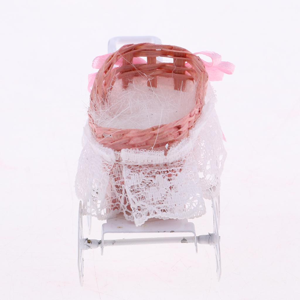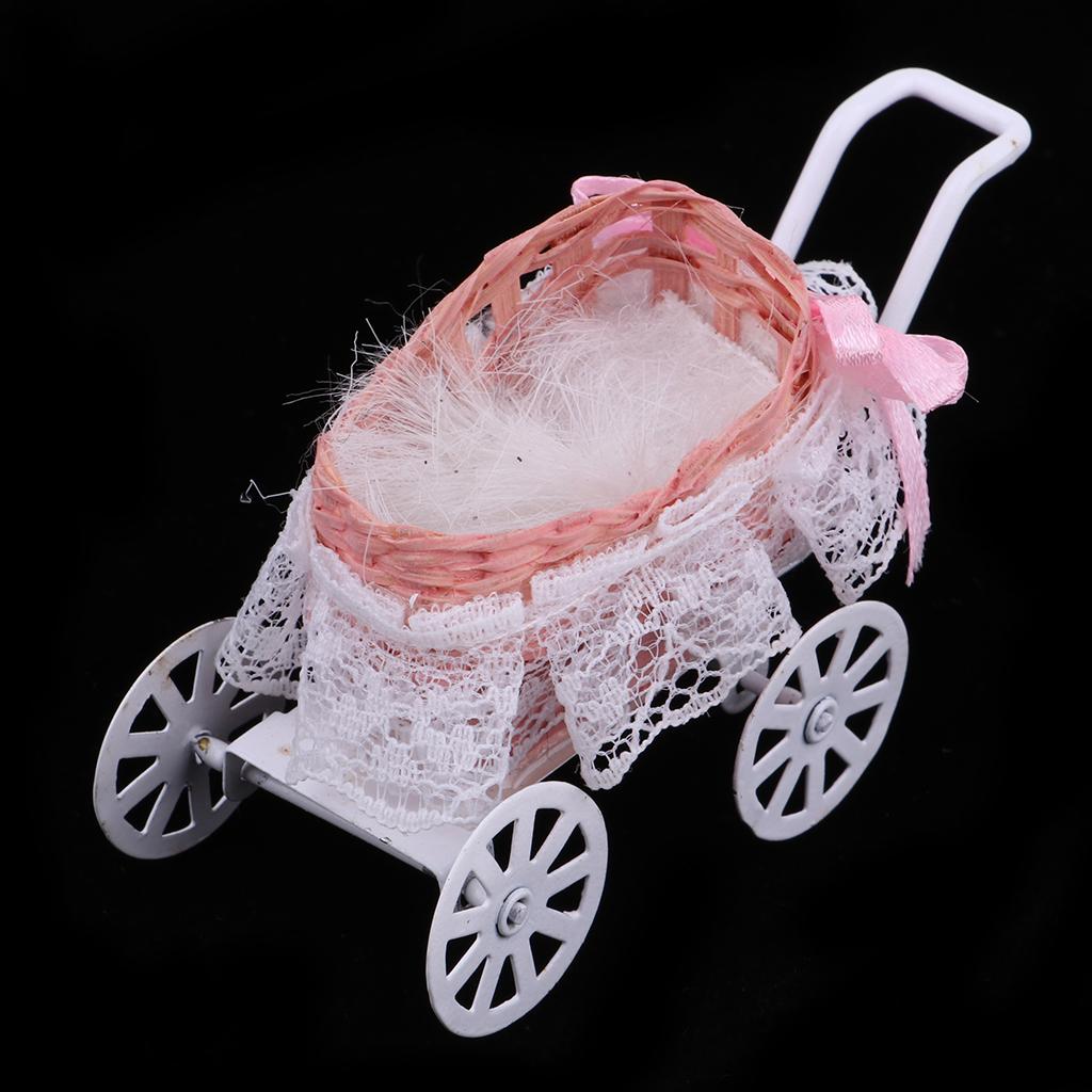 1/12 dollhouse miniatures mini alloy outdoor baby buggy pram push cart pushchair trolley dolls accs