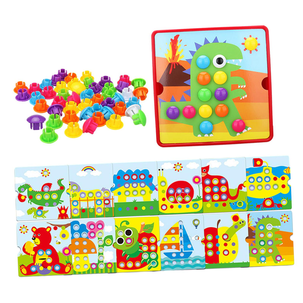 【Creative 】 matching and snapping the buttons to the illustrated pattern cards to complete the picture, then move on to creating own unique designs by only using pegboard.