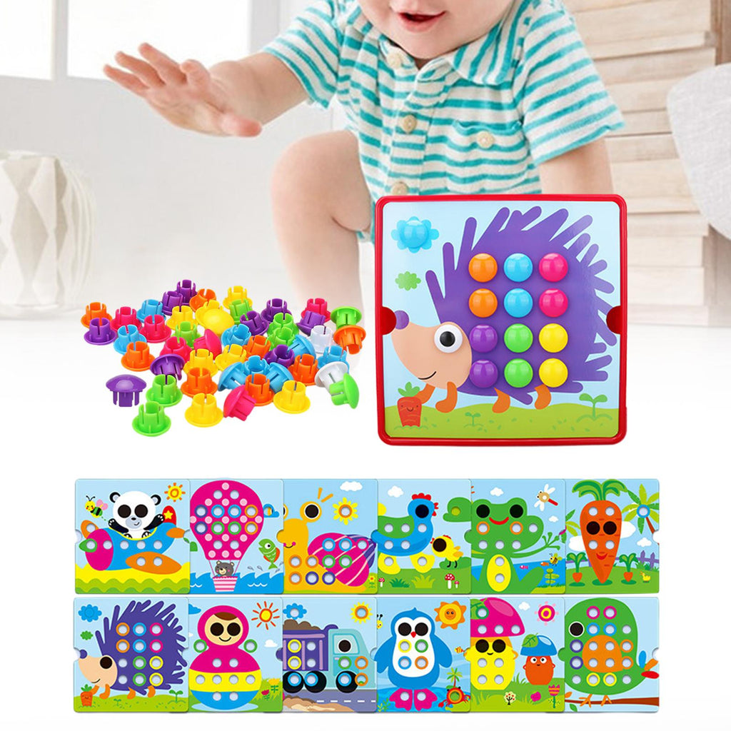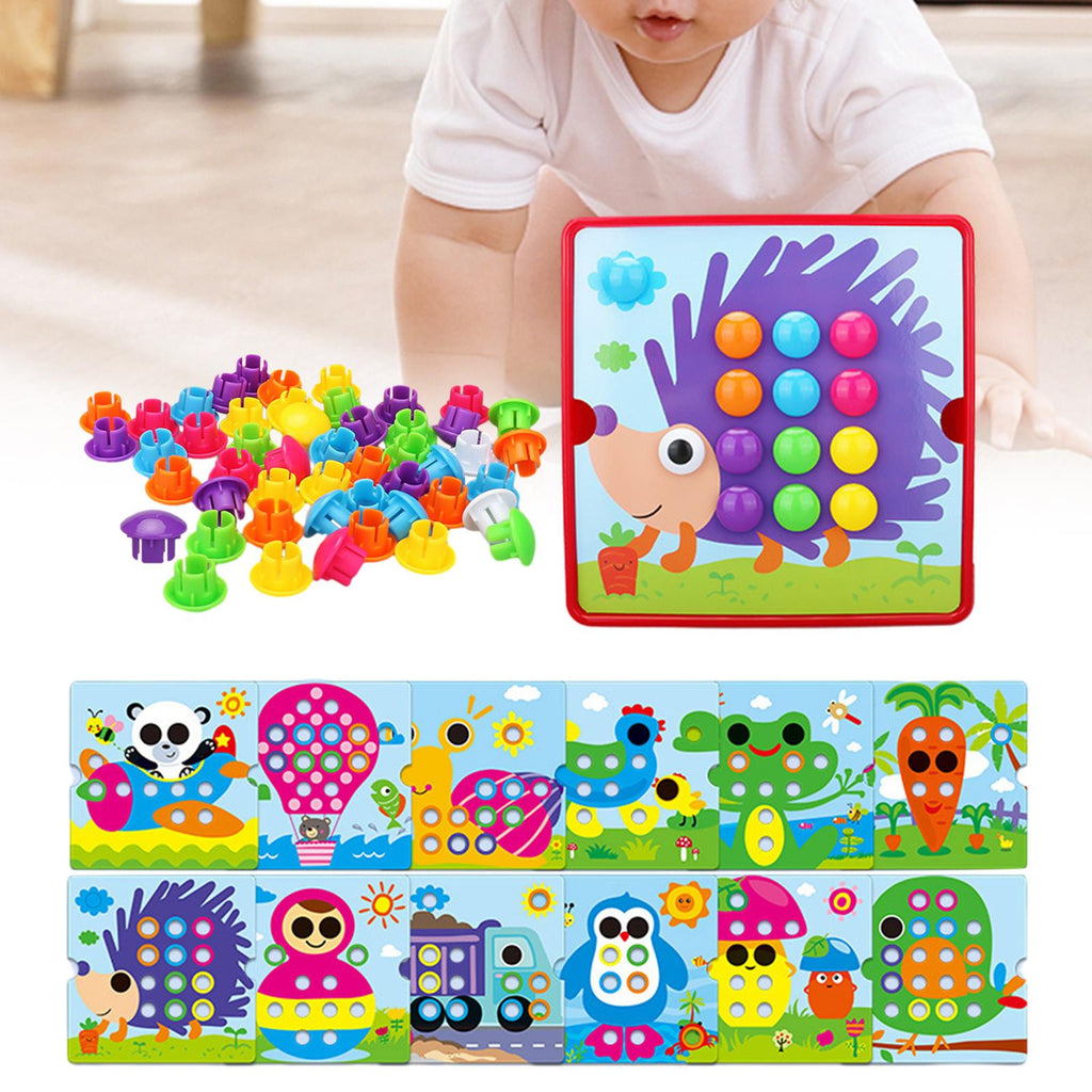 Maxbell Mosaic Pegboard Educational Toys with Pegs for 2 3 4 Year Olds Kids Toddlers Style F
