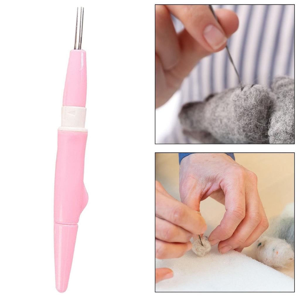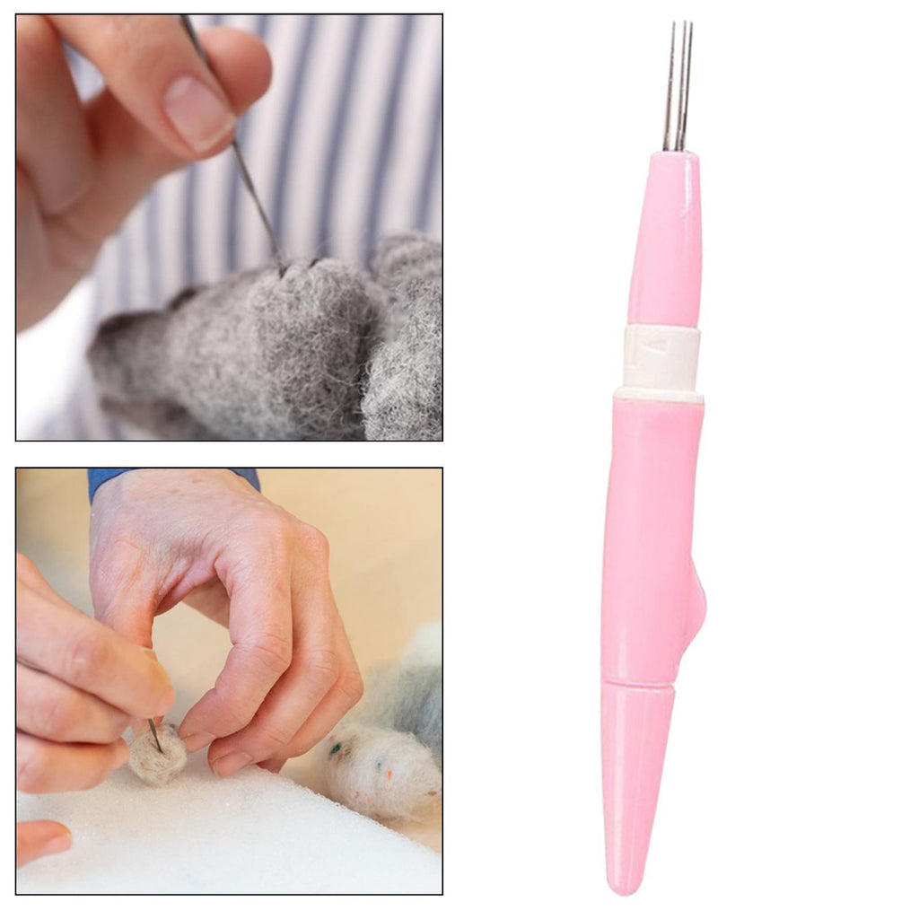 Maxbell Pen Style Needle Felting Tool Sturdy with 3 Needle for Wool Felt Toys Making Pink