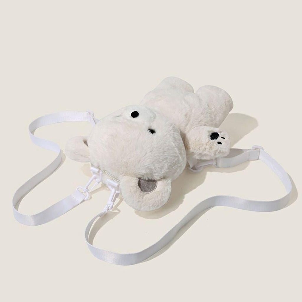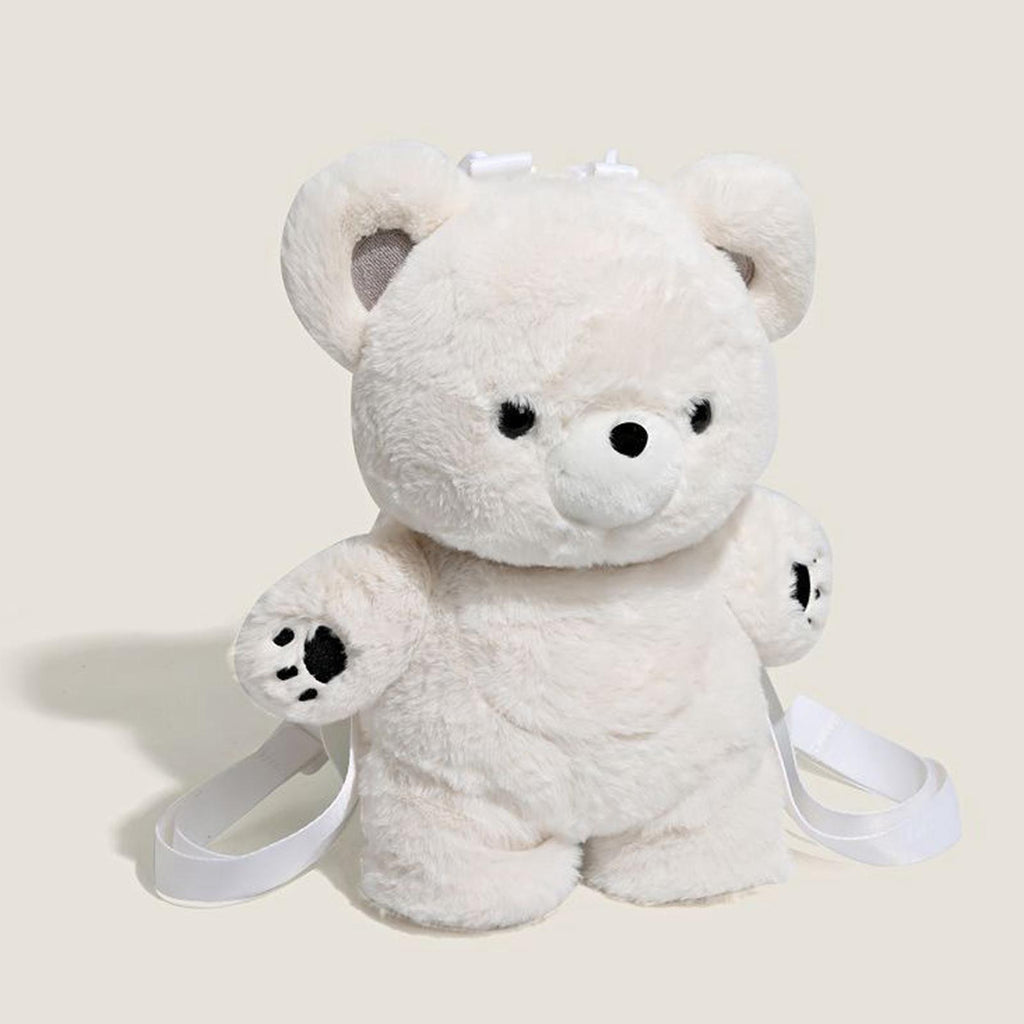 【Adorable Plush Bear Backpack】: This cute and cuddly backpack is designed in the shape of a plush bear, making it an eye catching accessory for kids and adults alike.