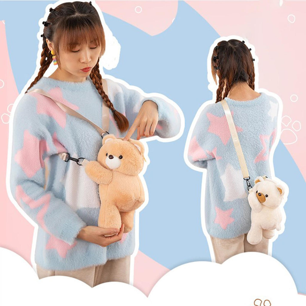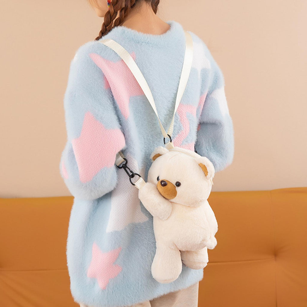 【Quality Materials】: Made from soft plush cloth and filled with PP cotton, this bear bag is not only adorable but also sturdy and comfortable to touch