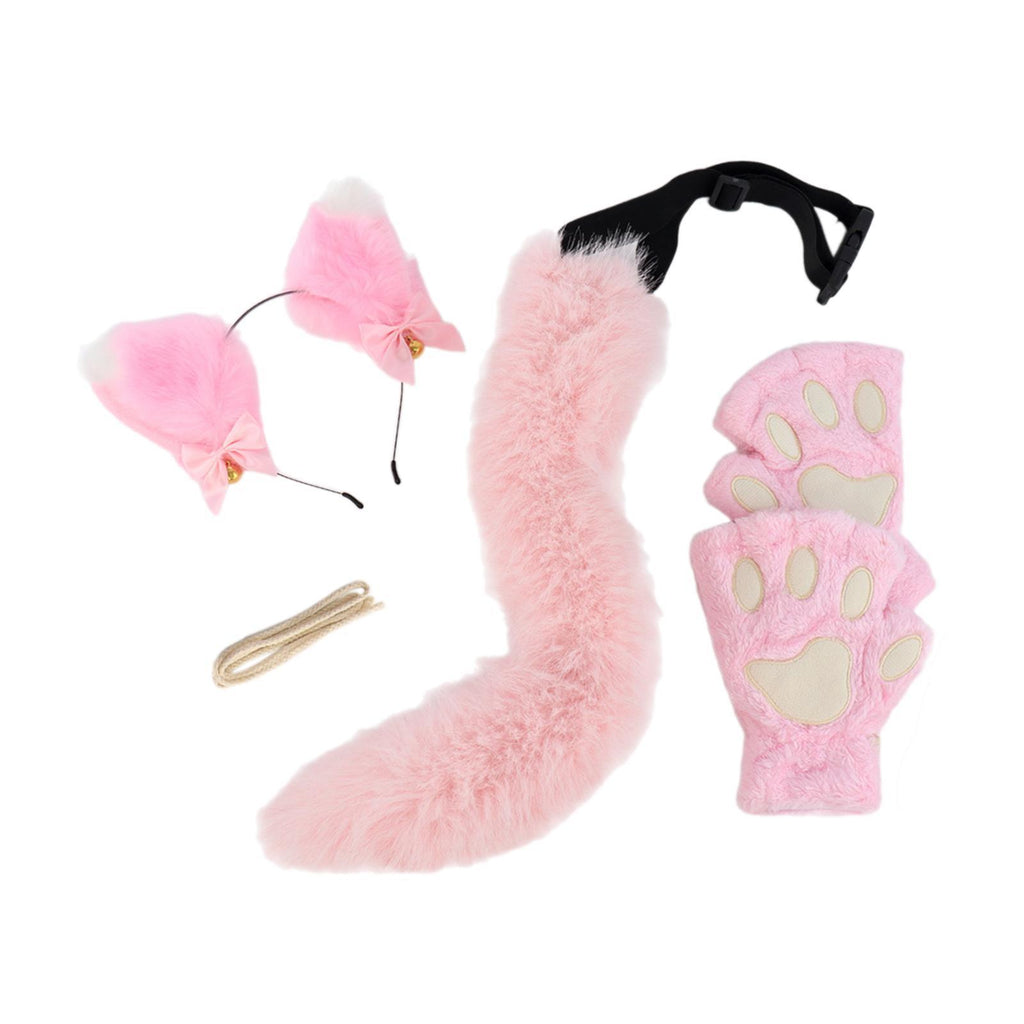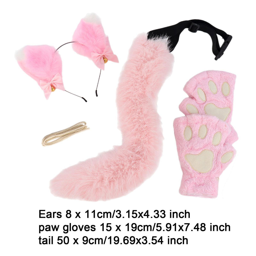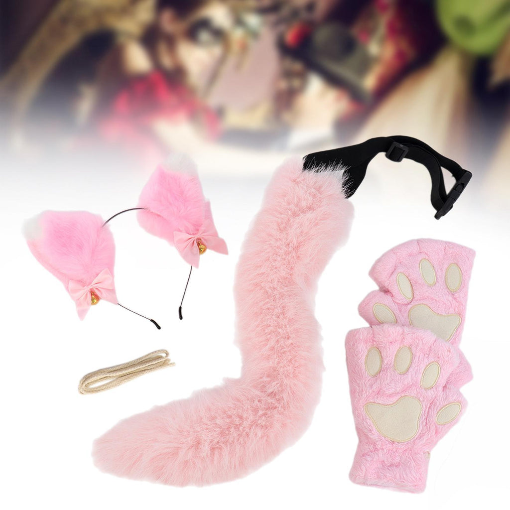 【Complete Cosplay Set】: This adorable cosplay set includes a pair of cat ears on a headband, plush paws gloves, and a matching tail. Great for Halloween or any dress up event, this set adds a playful touch to your costume