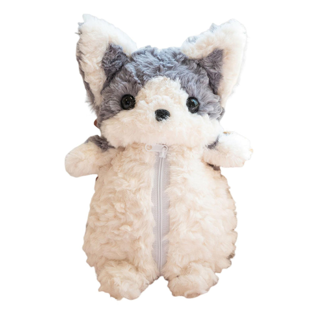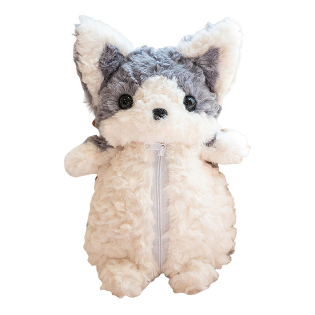 Maxbell Plush Corgi Dog Shape Pencil Case Storage Pencil Pouch for College Home Kids Gray