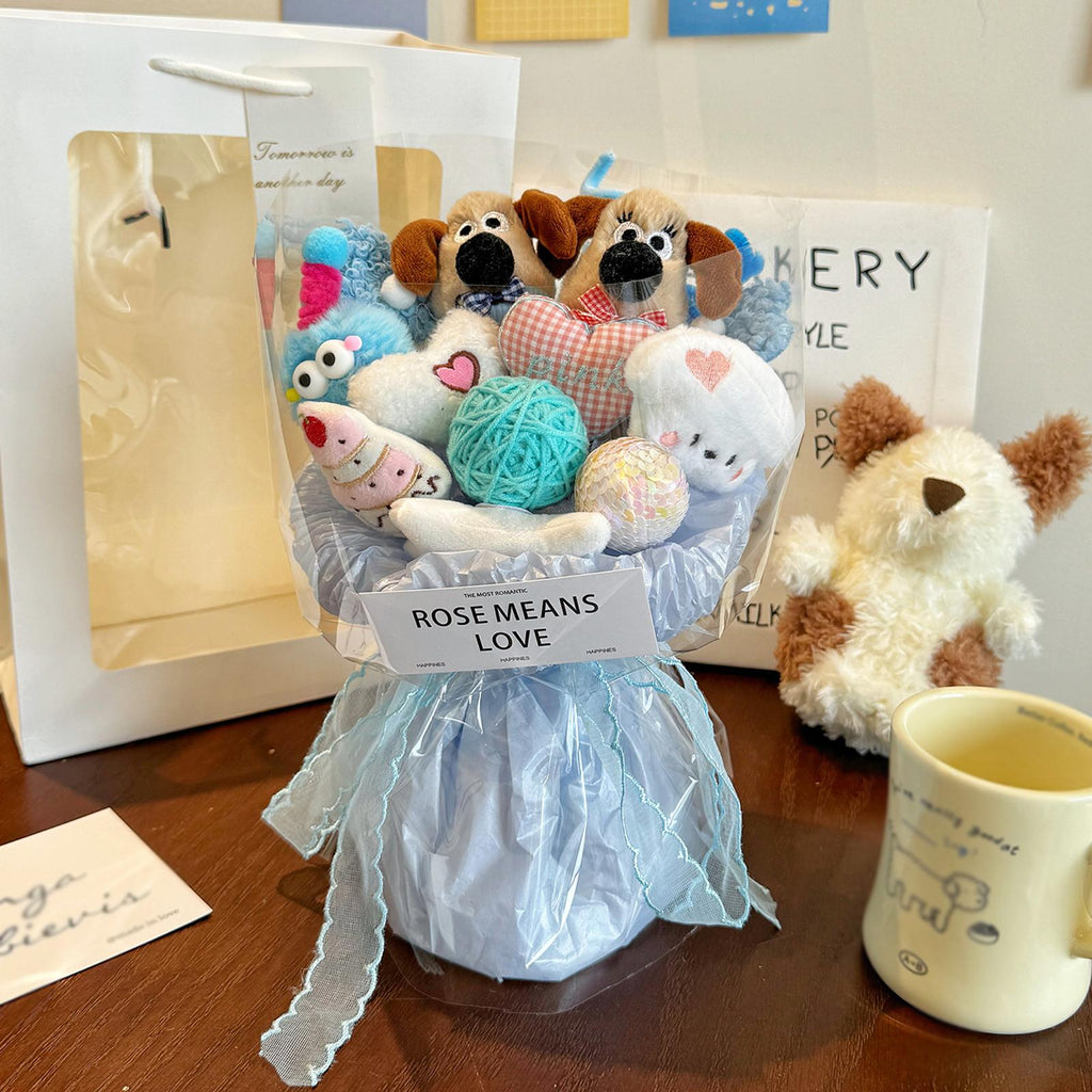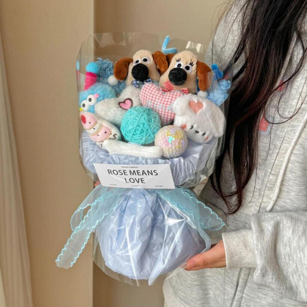 Plush Doll Bouquet Doll Flower Bouquet for Girlfriend Bridal Shower Birthday Blue