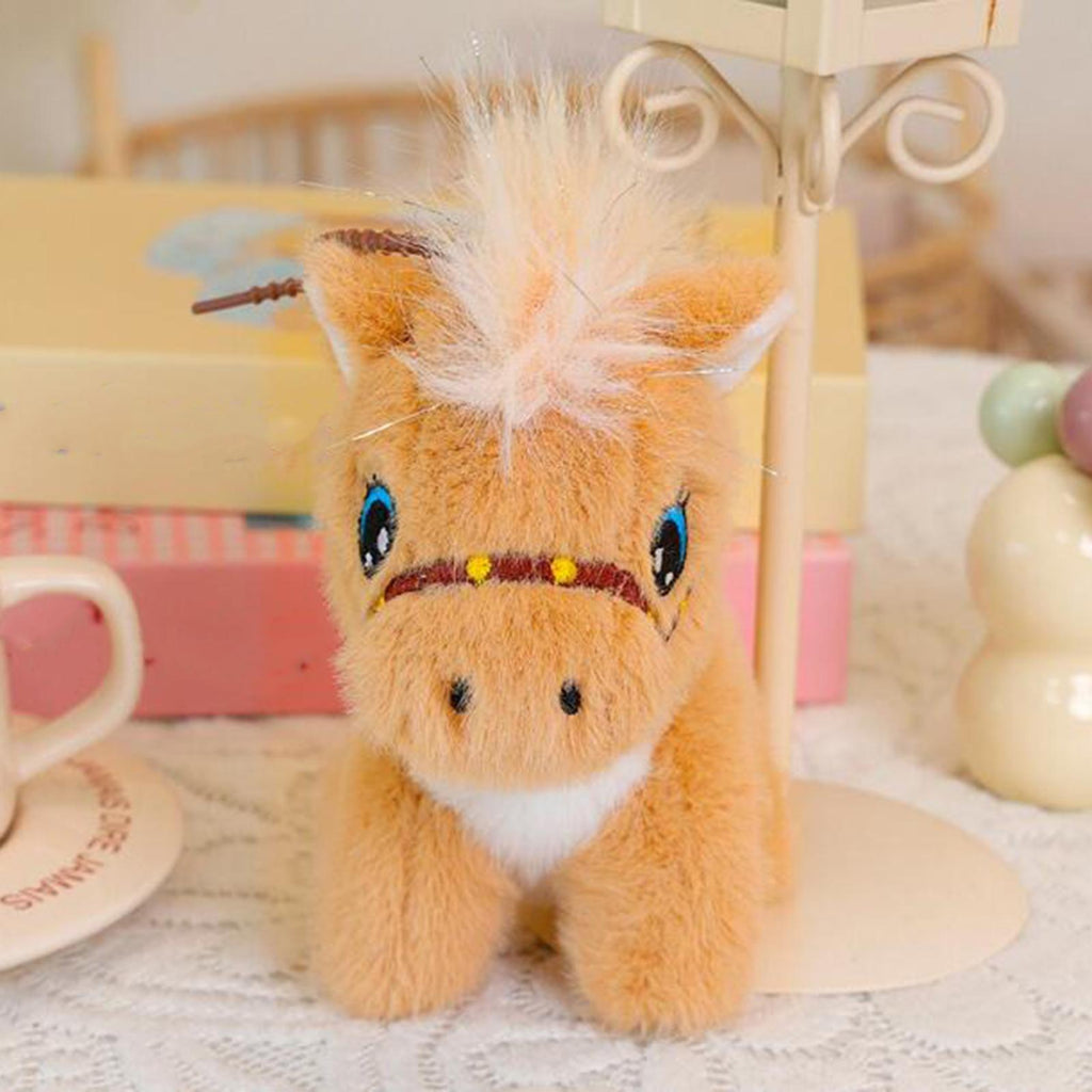 Maxbell Plush Horse Keychain Birthday Gift Decoration Mini Plush Toy Pendant Key Ring Brown