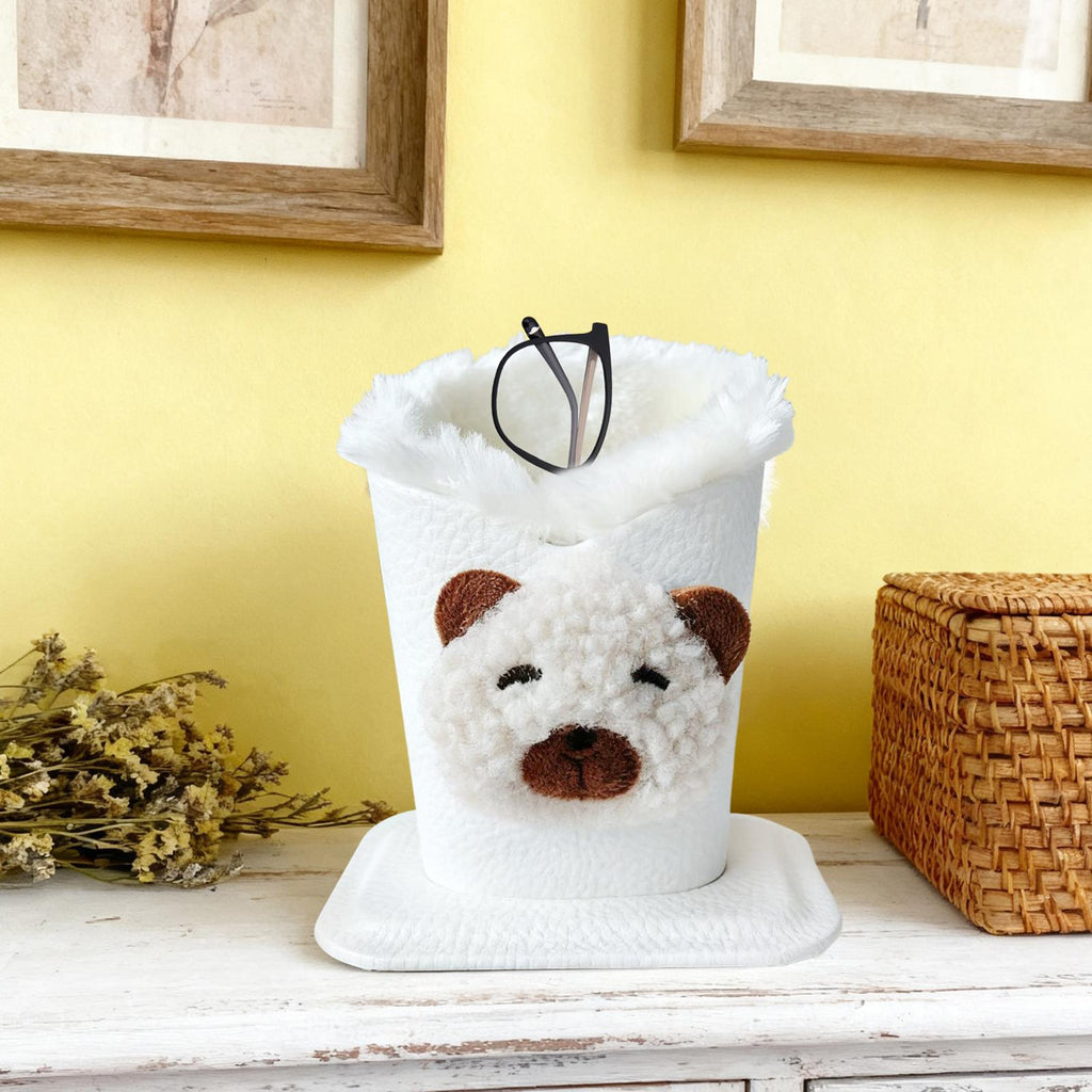 Plush Lined Eyeglass Holder Modern Glasses Holder Case for Office Home Table Bears