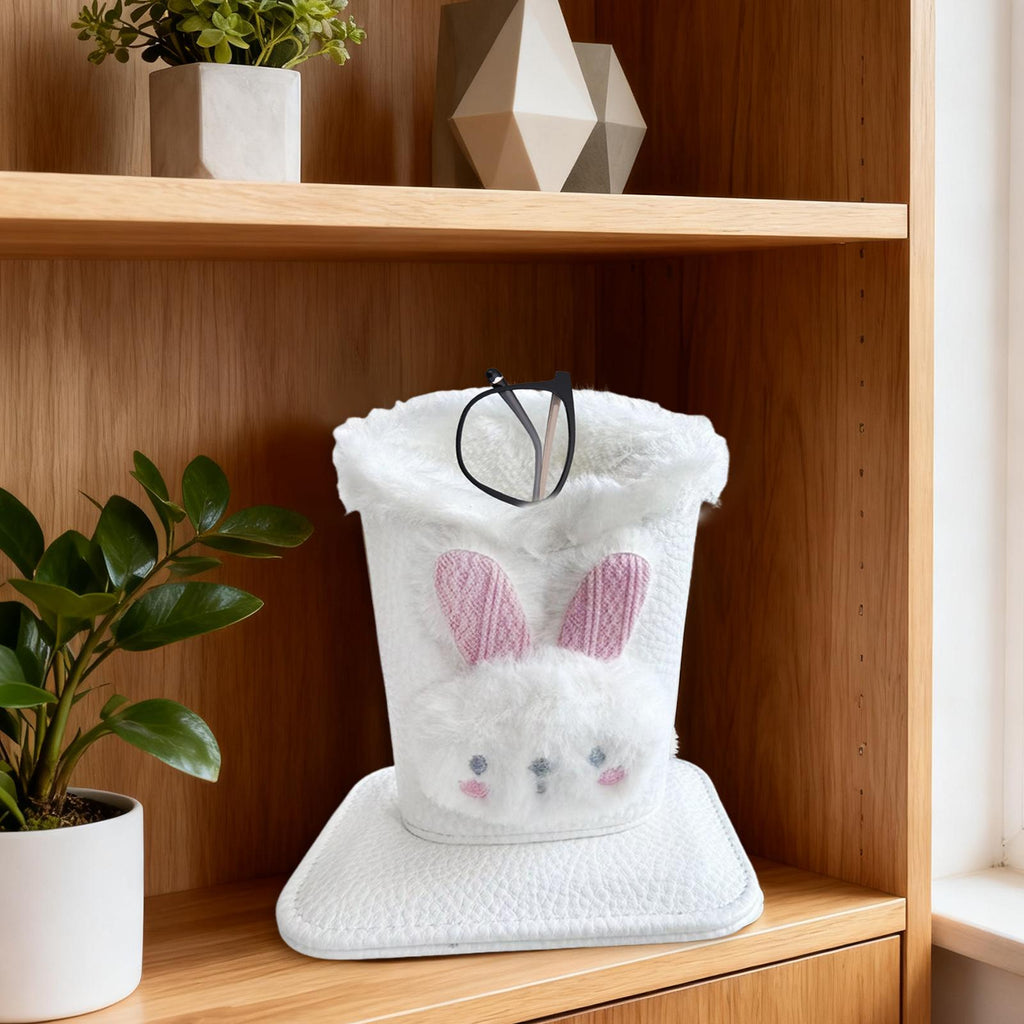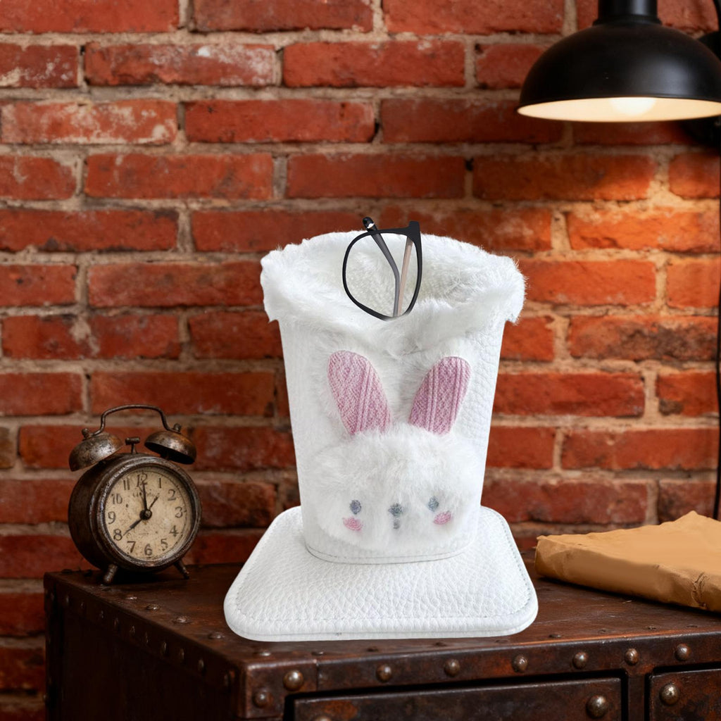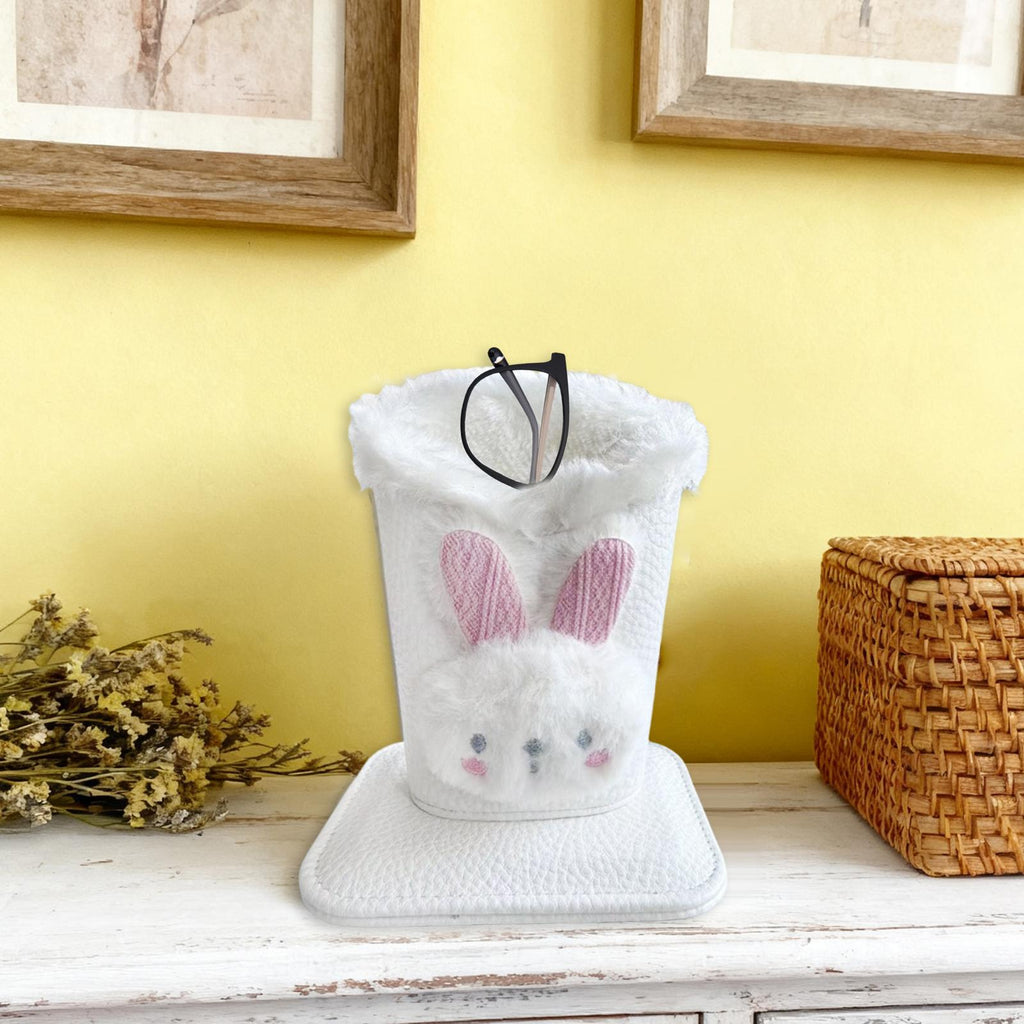 Plush Lined Eyeglass Holder Modern Glasses Holder Case for Office Home Table Bunny