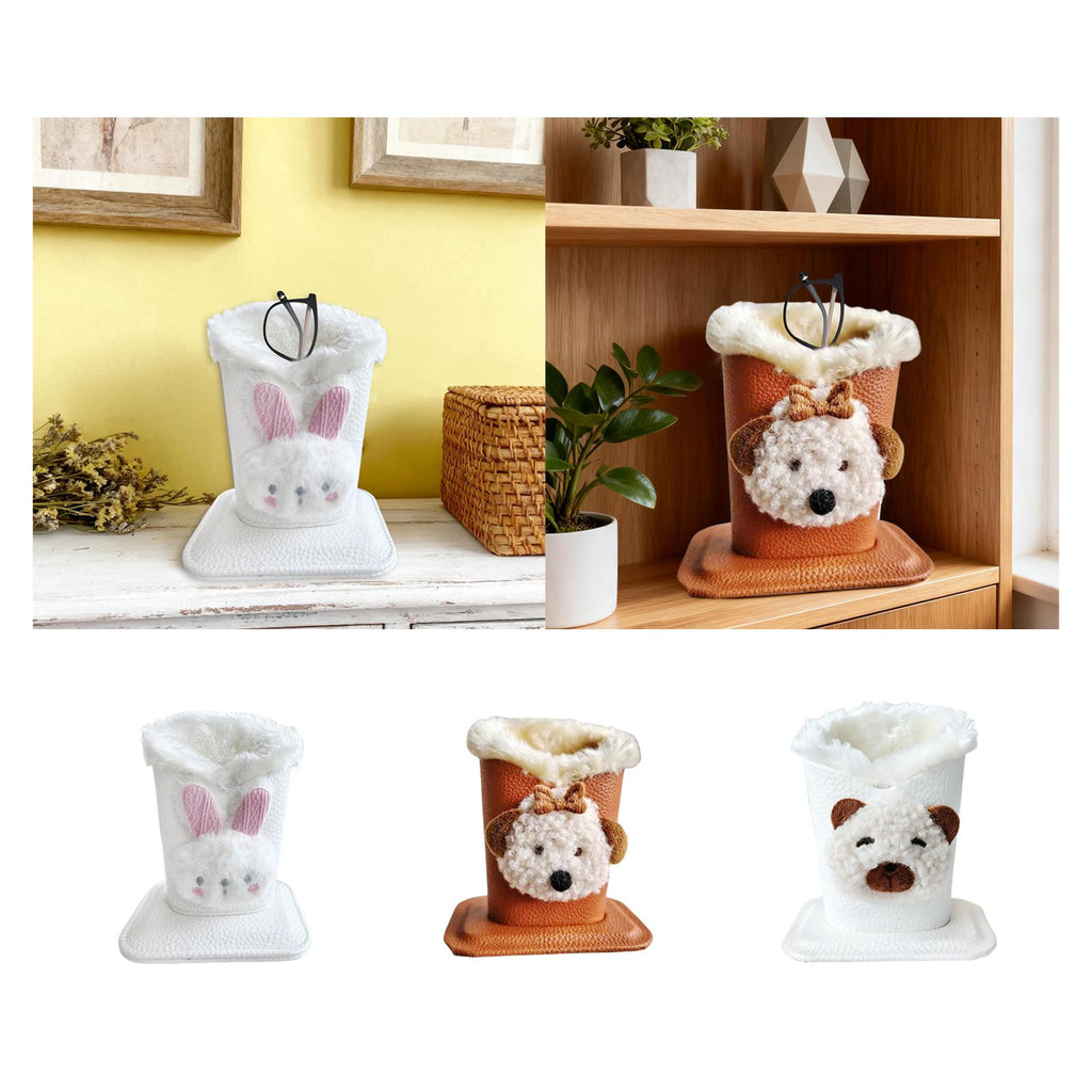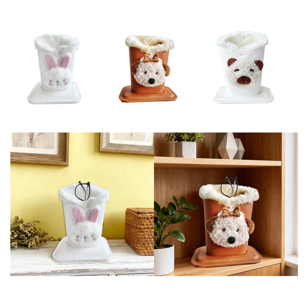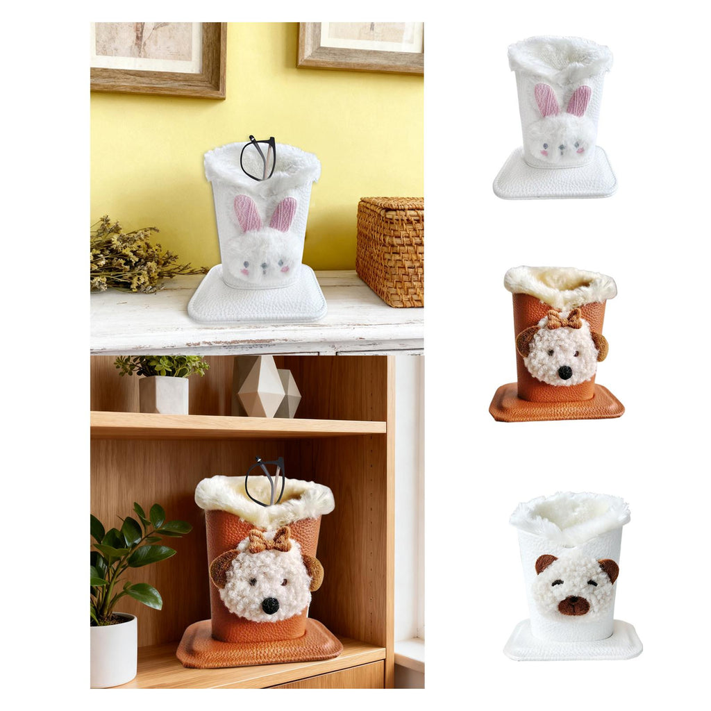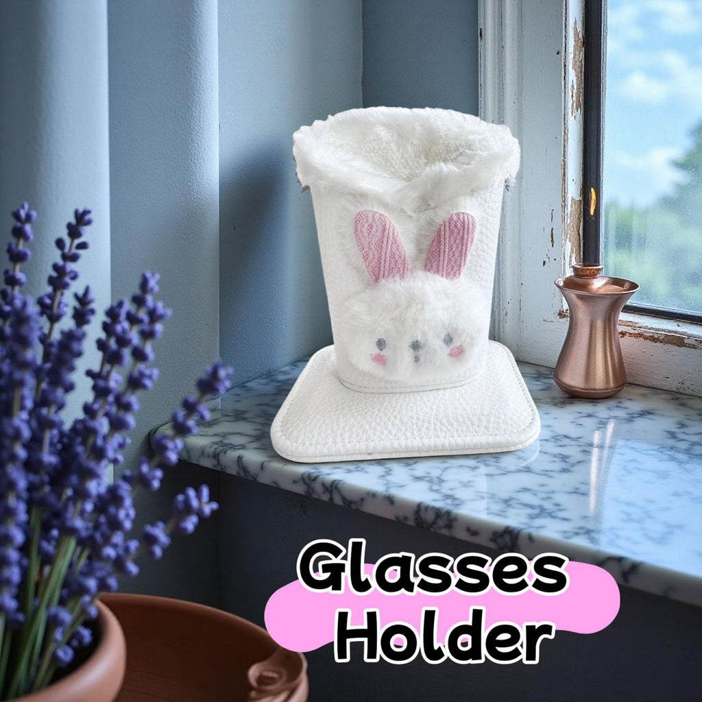 Plush Lined Eyeglass Holder Modern Glasses Holder Case for Office Home Table Bunny