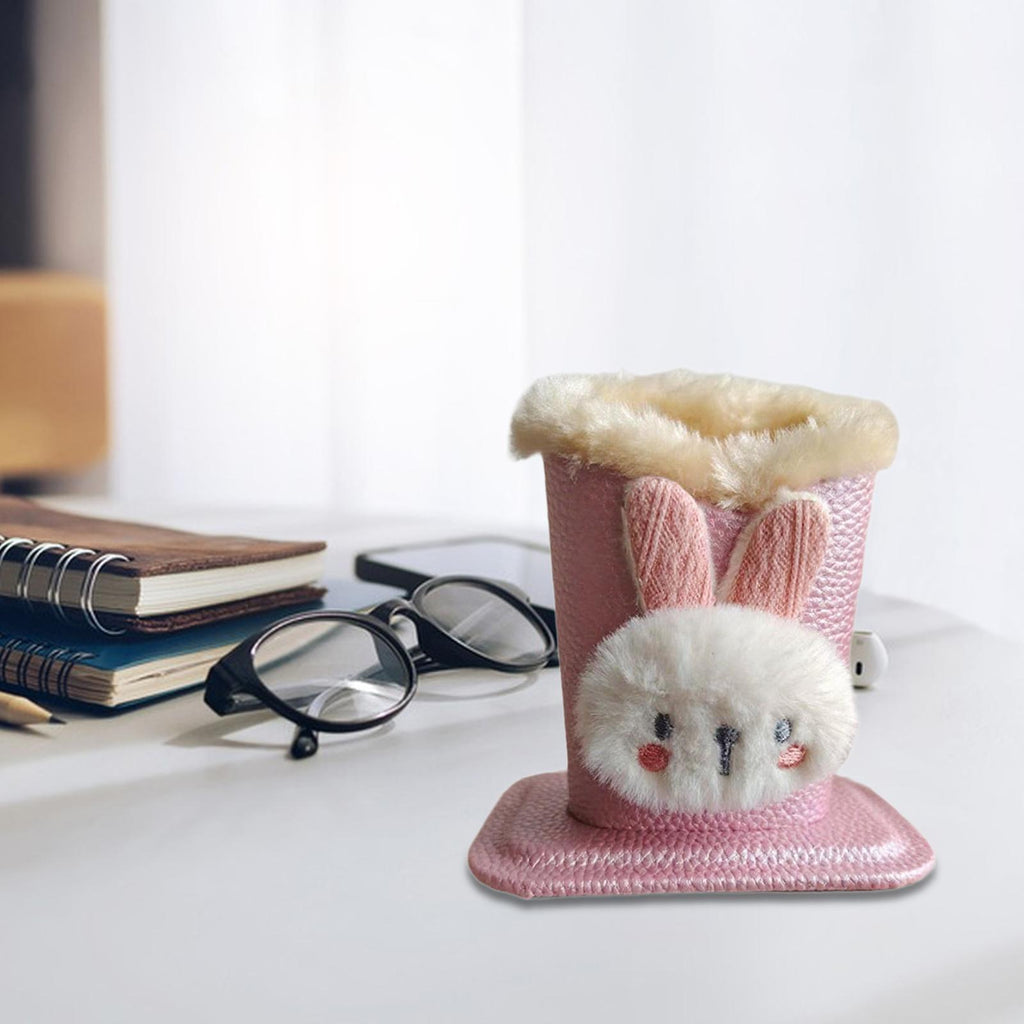Plush Lined Eyeglass Holder Modern Sturdy Cartoon for Office NightStand Home Pink Bunny