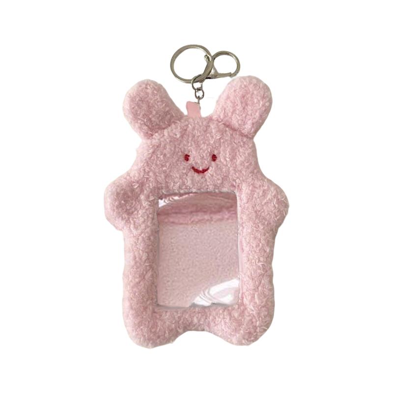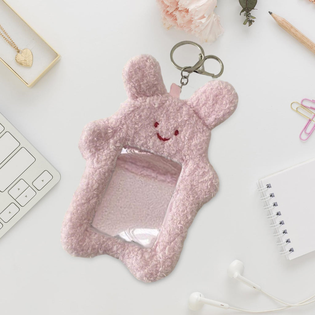 Maxbell Plush Photocard Holder Cute Soft Cartoon Hanging Decoration Protective Cover Pink