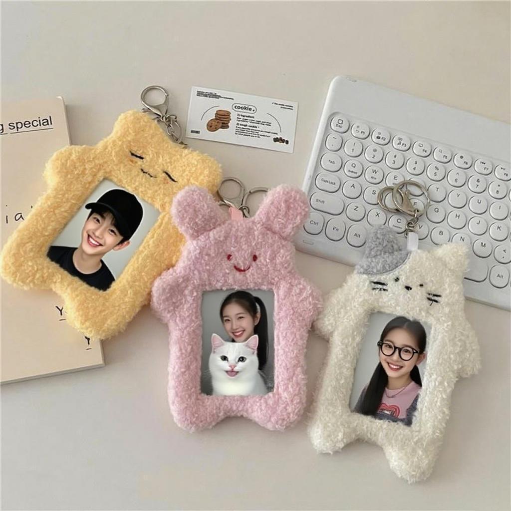 - 【Premium Material】: Crafted from quality plush and pp, this Plush Photocard Holder is soft, lightweight. It features a key ring for hanging, making it both functional and charming