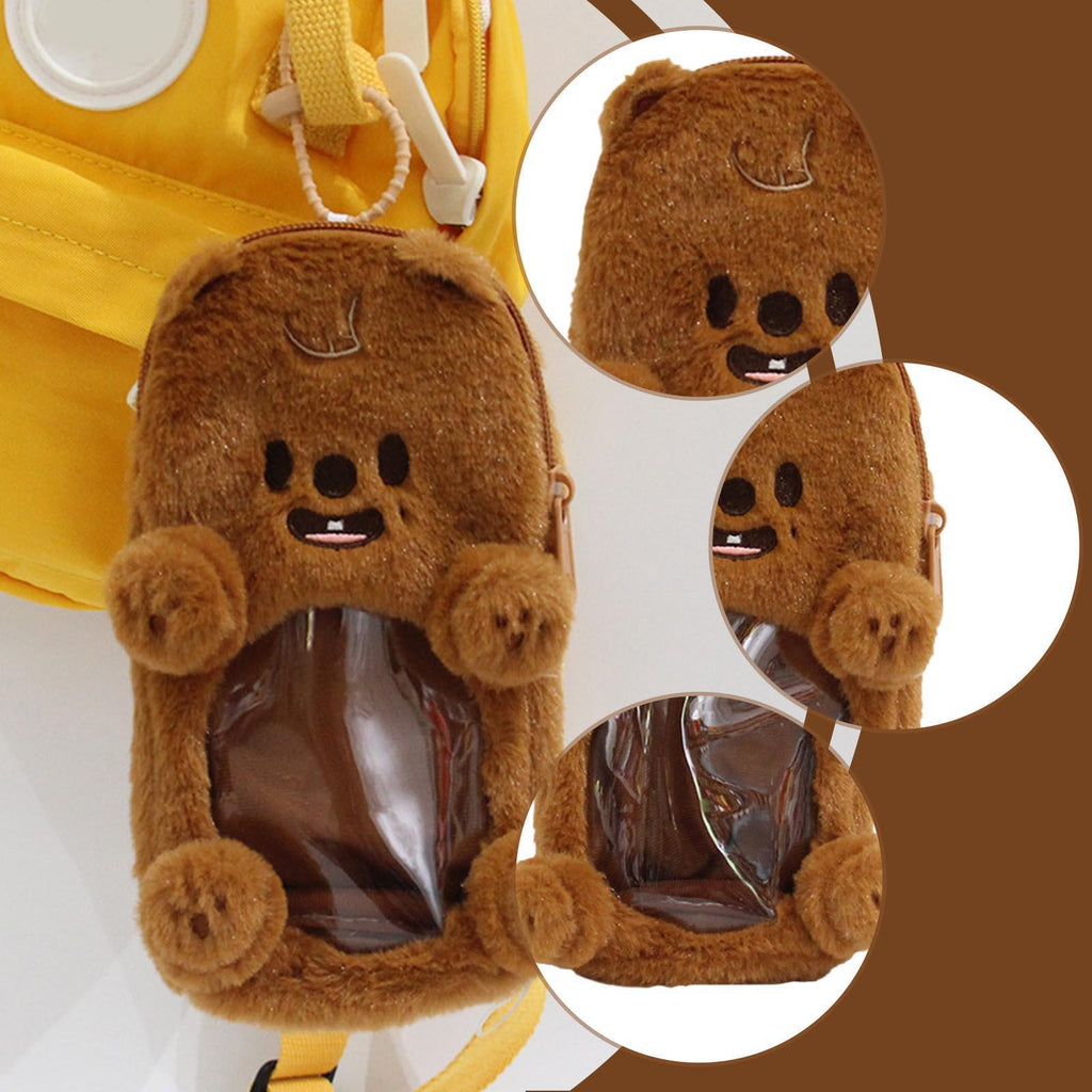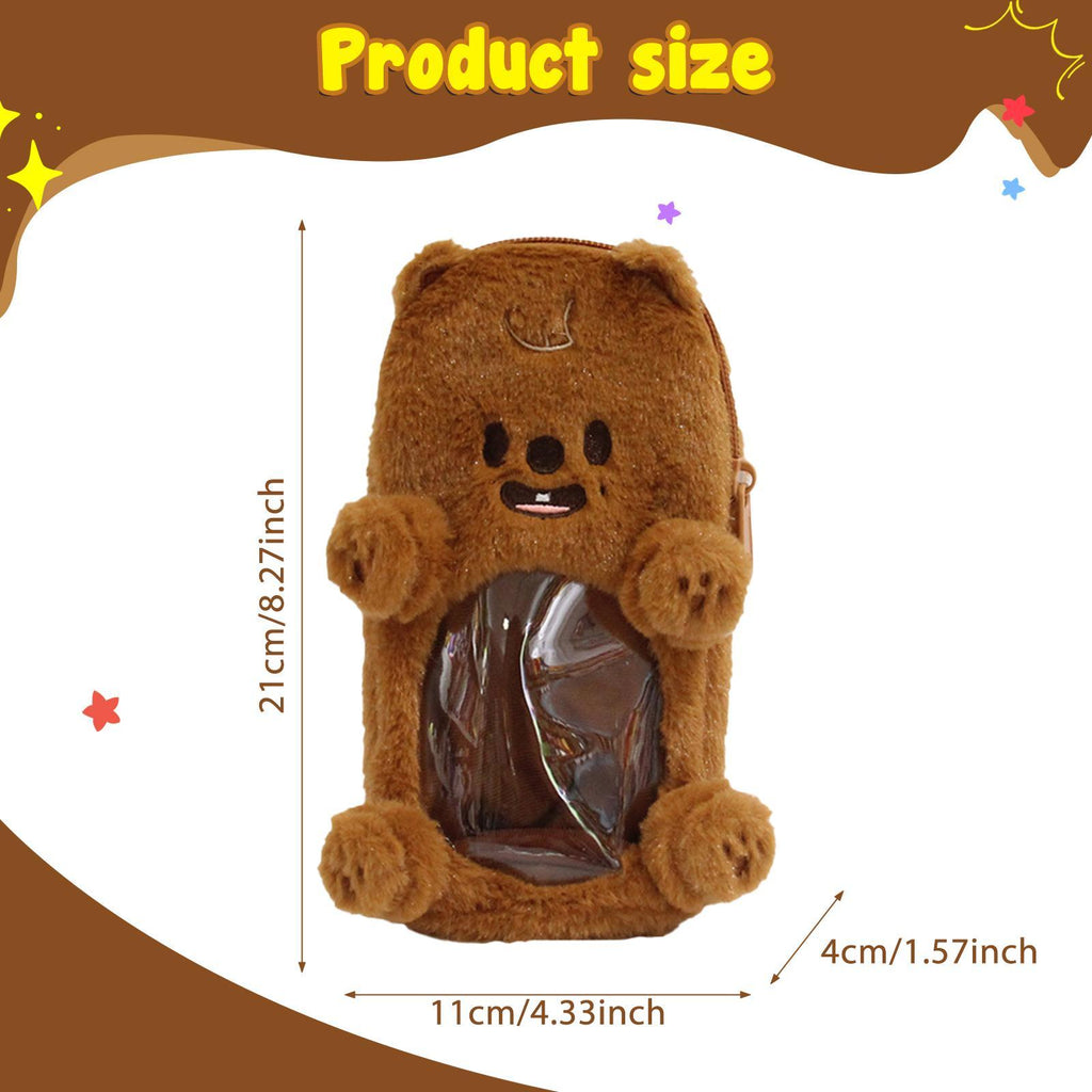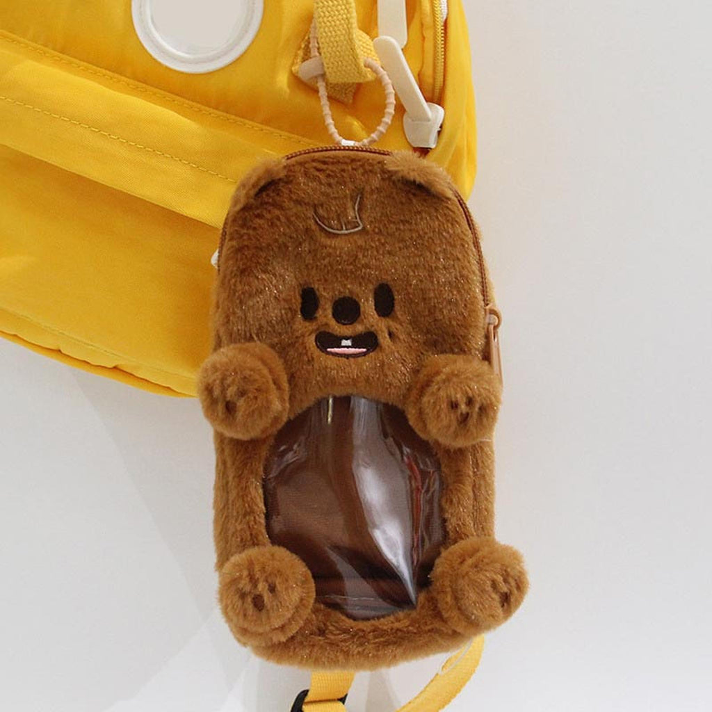 Maxbell Plush Photocard Holder Portable Protector Hanging Decoration Protective Case Brown Bear