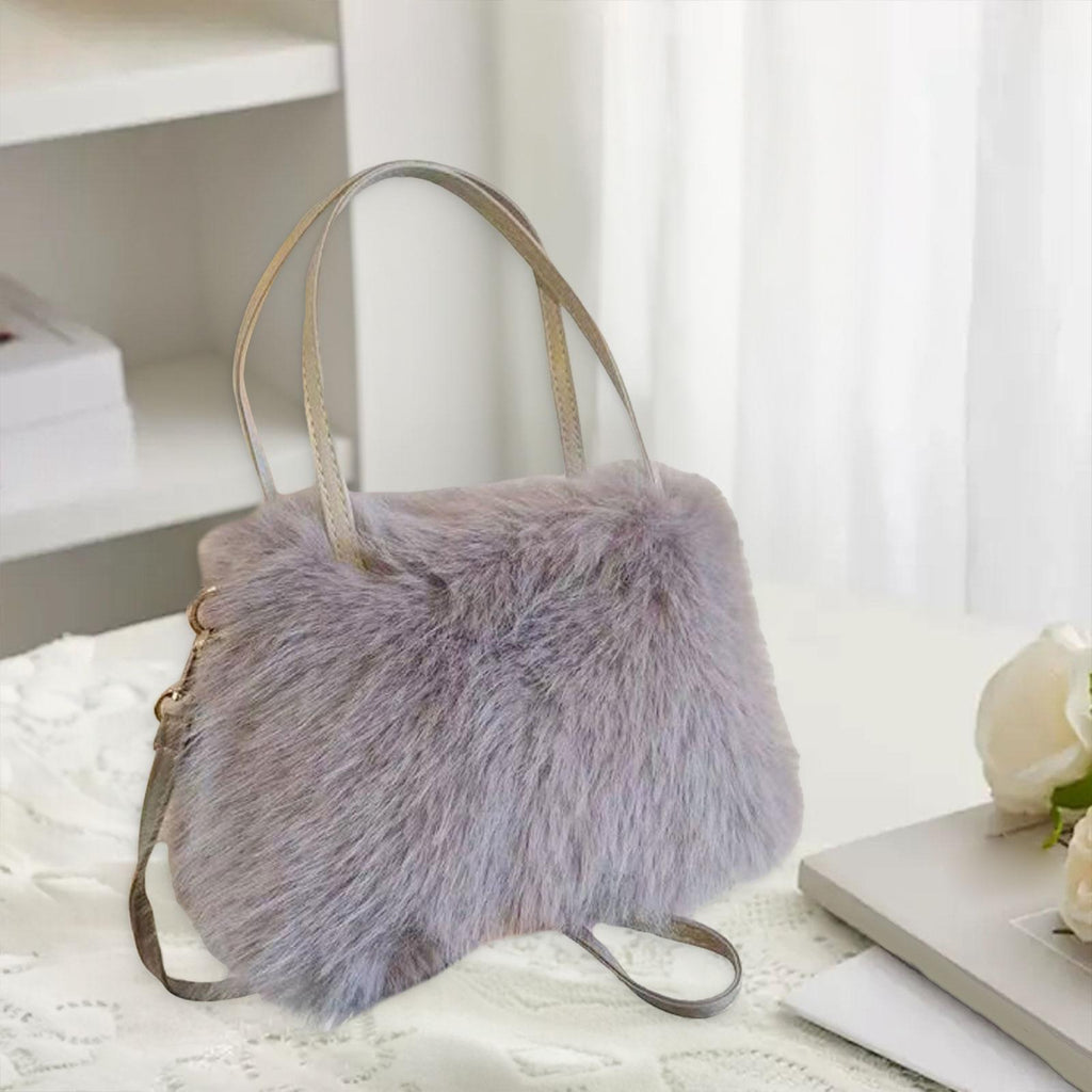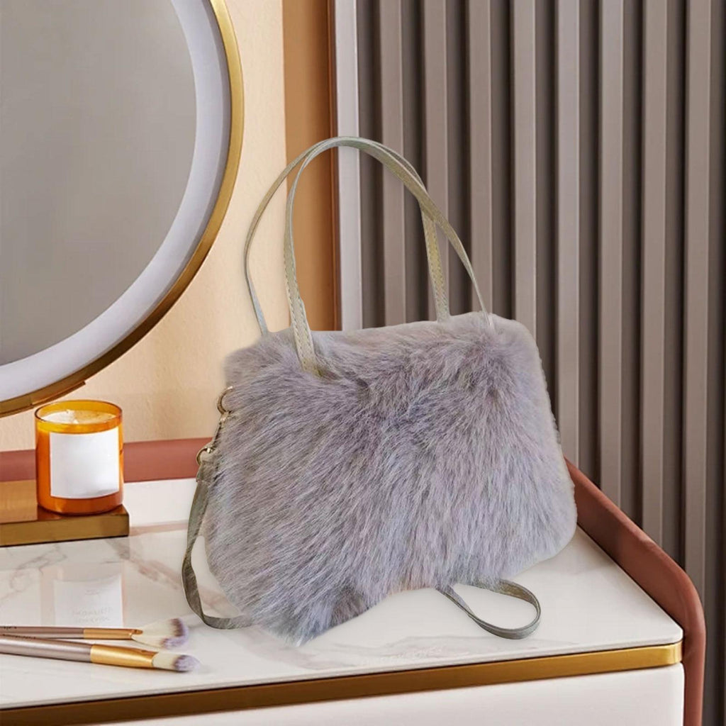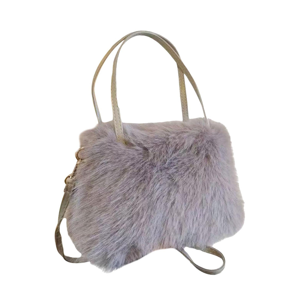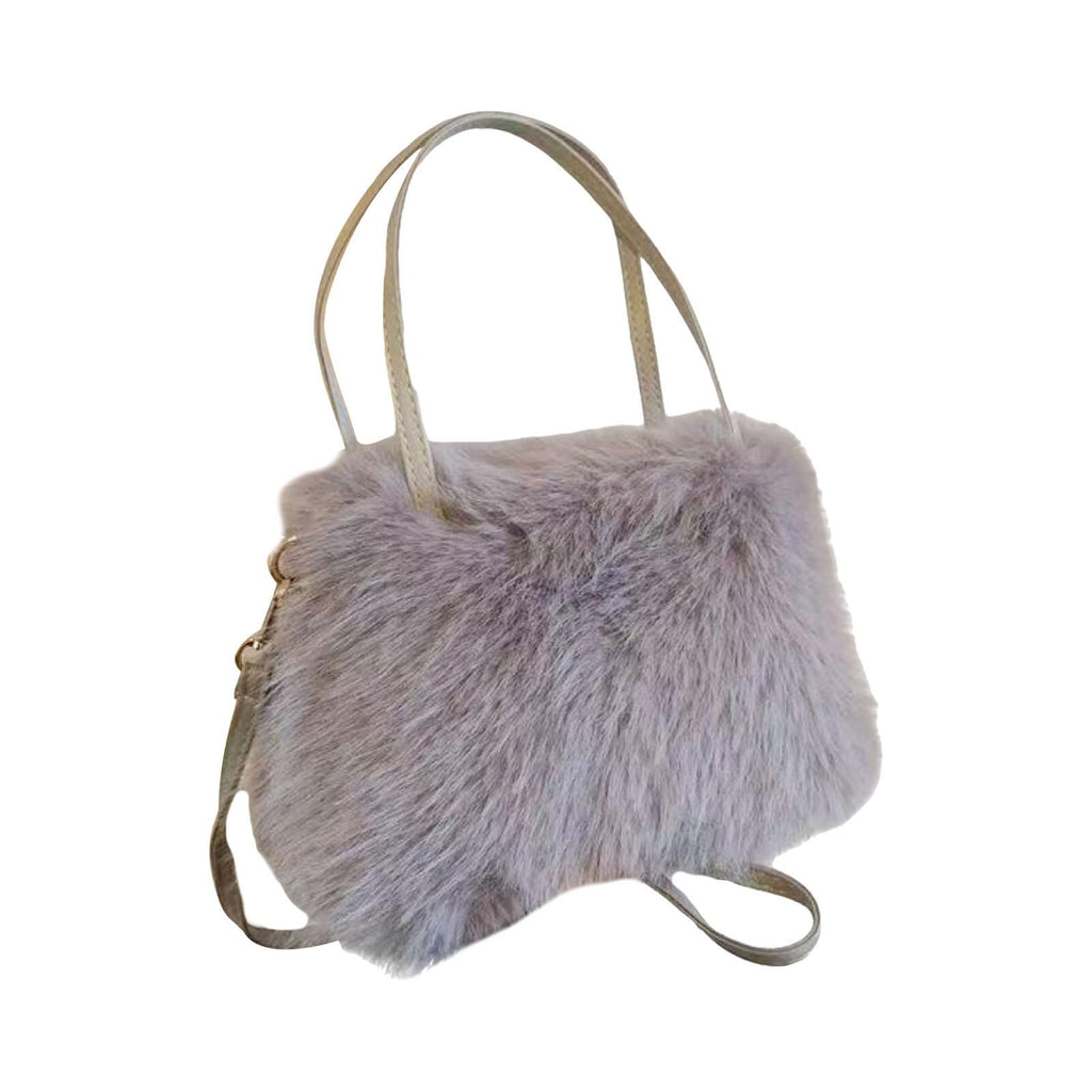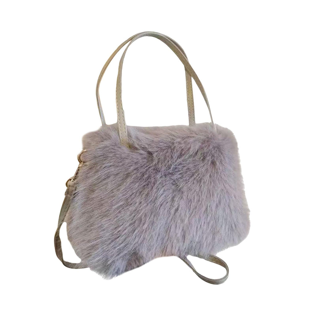 Plush Tote Bag Soft Lightweight Satchel Crossbody Bag for Travel Dating Work Gray