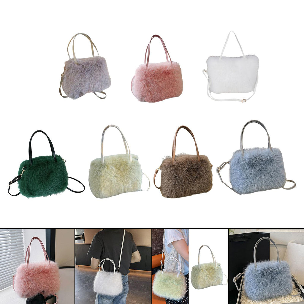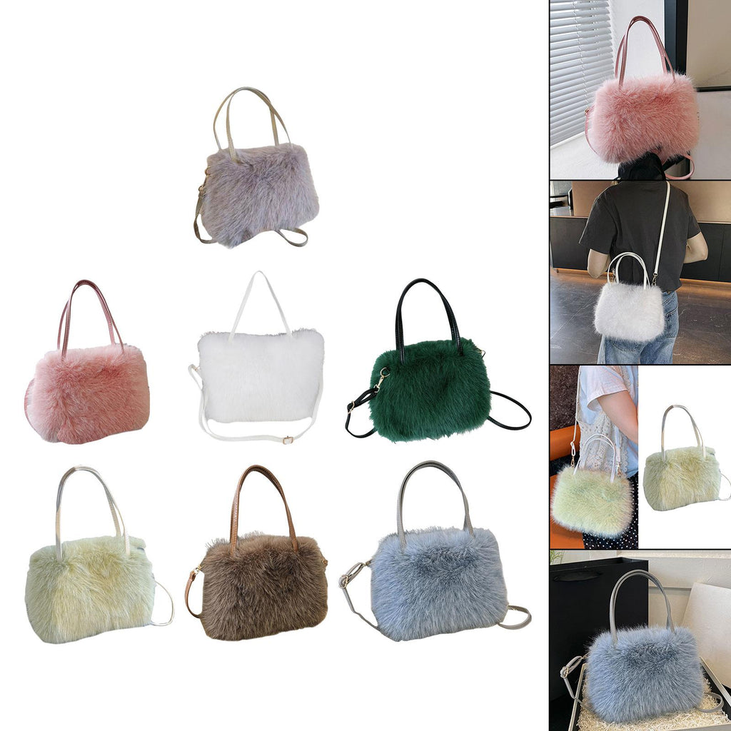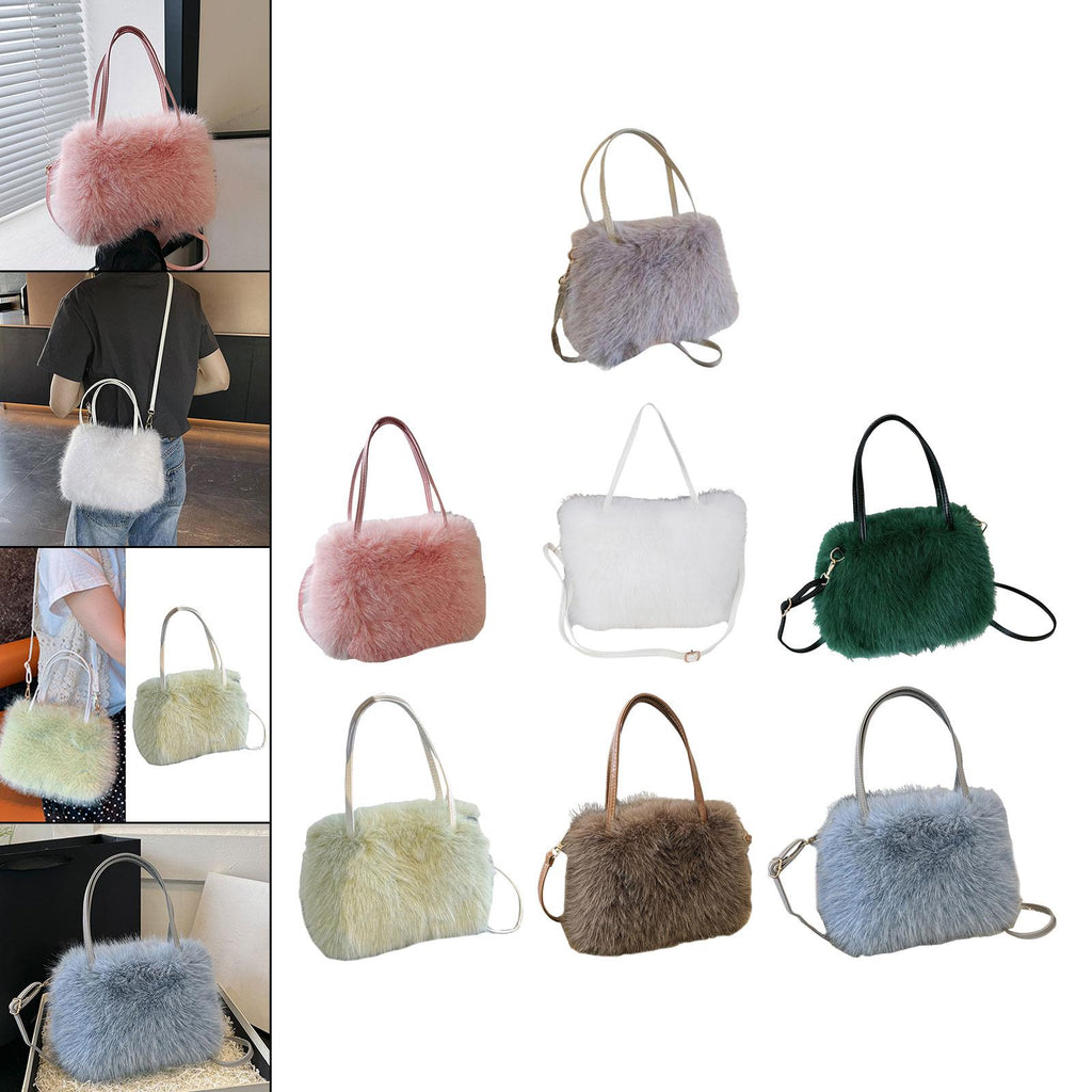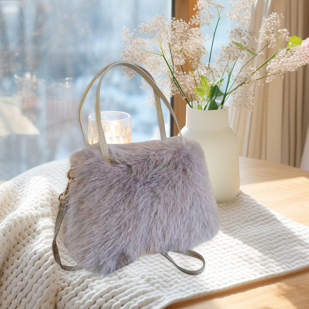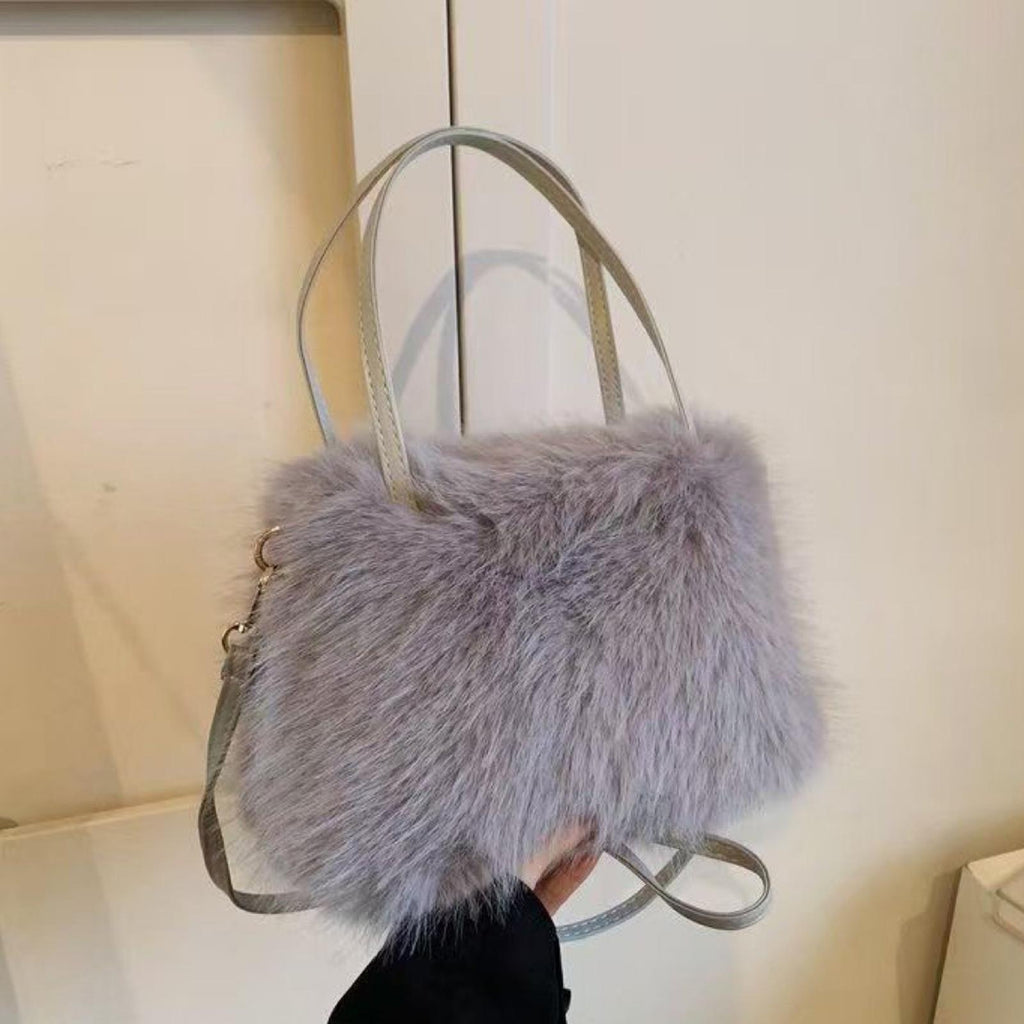Plush Tote Bag Soft Lightweight Satchel Crossbody Bag for Travel Dating Work Gray