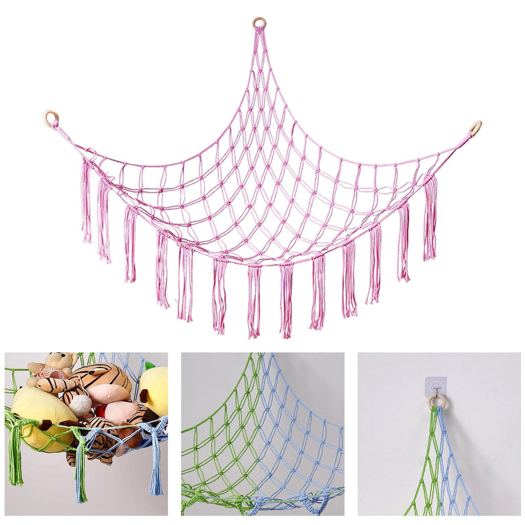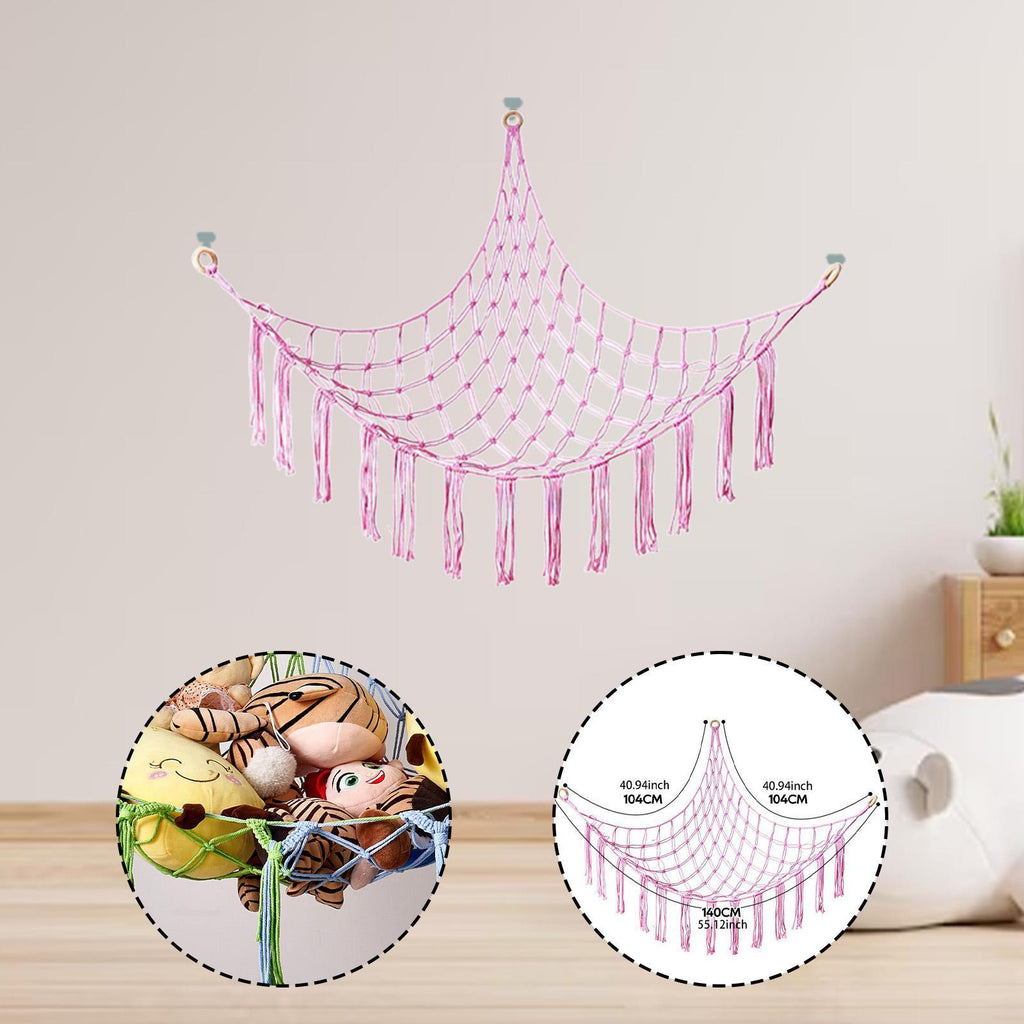 Maxbell Plush Toy Hammock Net Wall Net Toy Storage Net for Home Kids Room Decoration Pink
