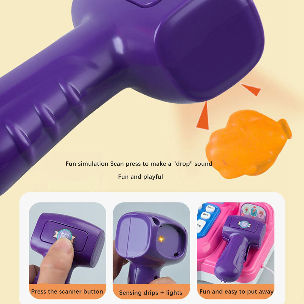 【Interactive toys】: Children Supermarket Toy with scanning Tool and cash register drawer and Calculator, with sound and light, attracting children to play and feel happy