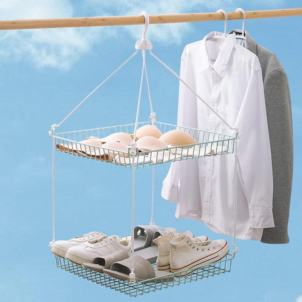 Maxbell Sweater Drying Rack Mesh Apartments Toys Coat Lingerie Clothes Hanging Dryer Blue Double Tier