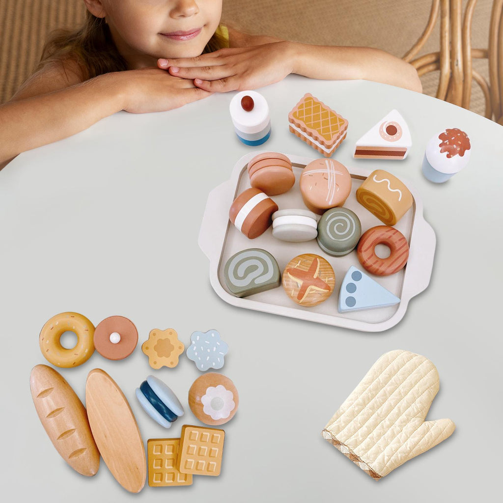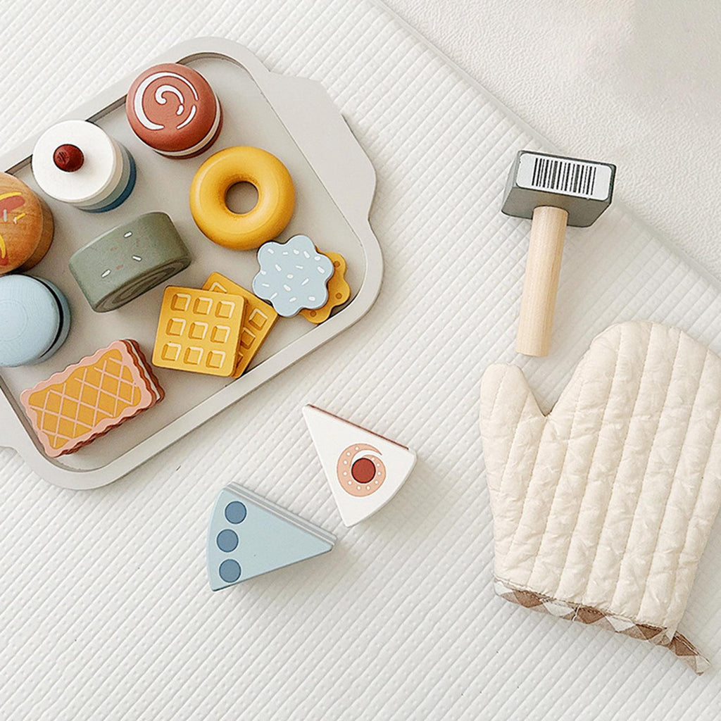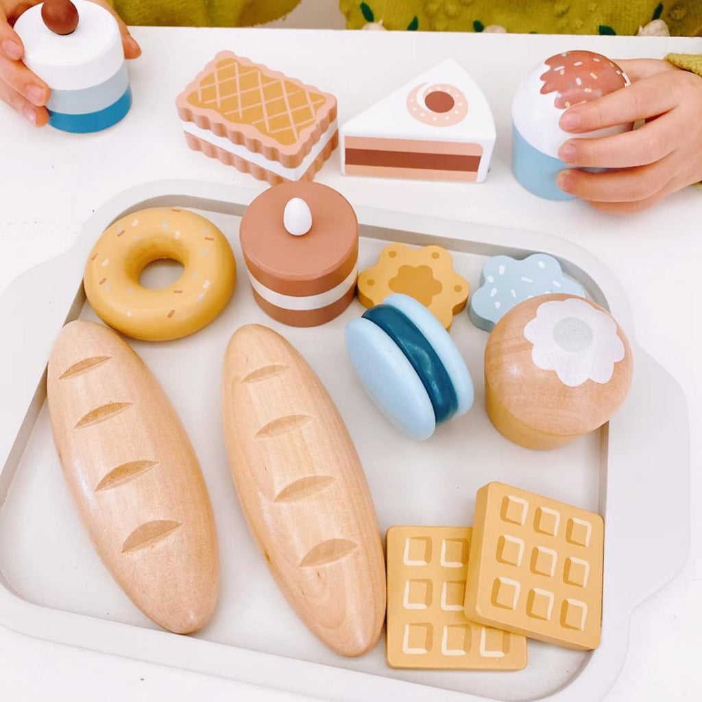 【Developmental】: Wood Bakery Playset, children can learn to cook, exercise their hands on ability and fine motor skills.