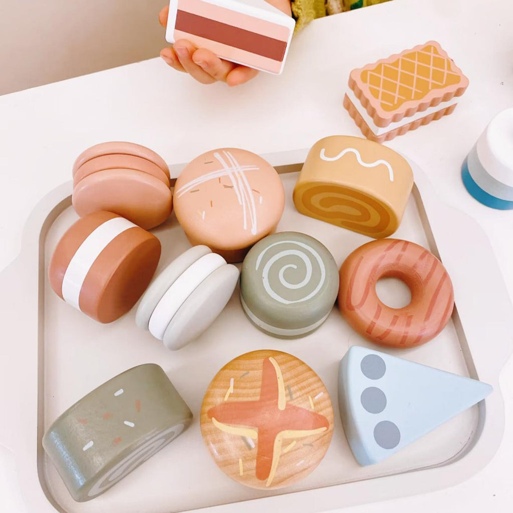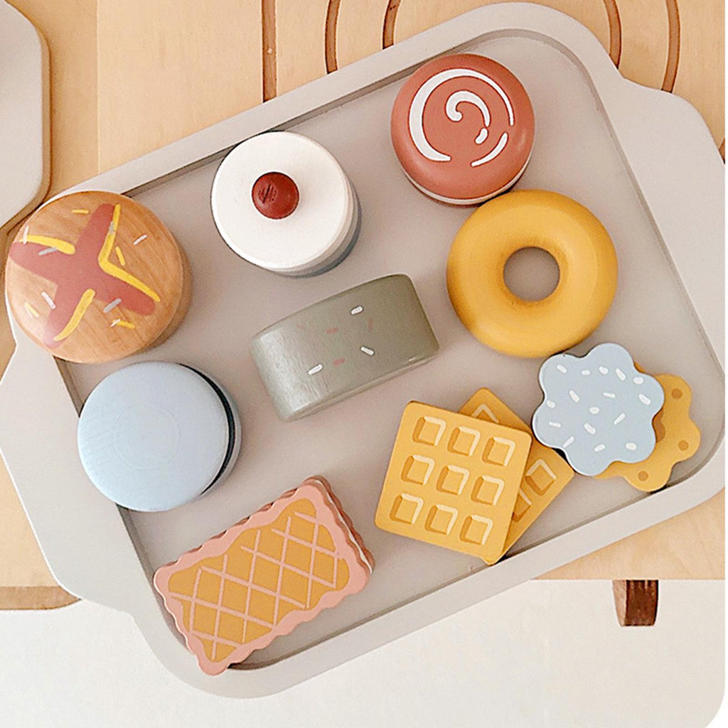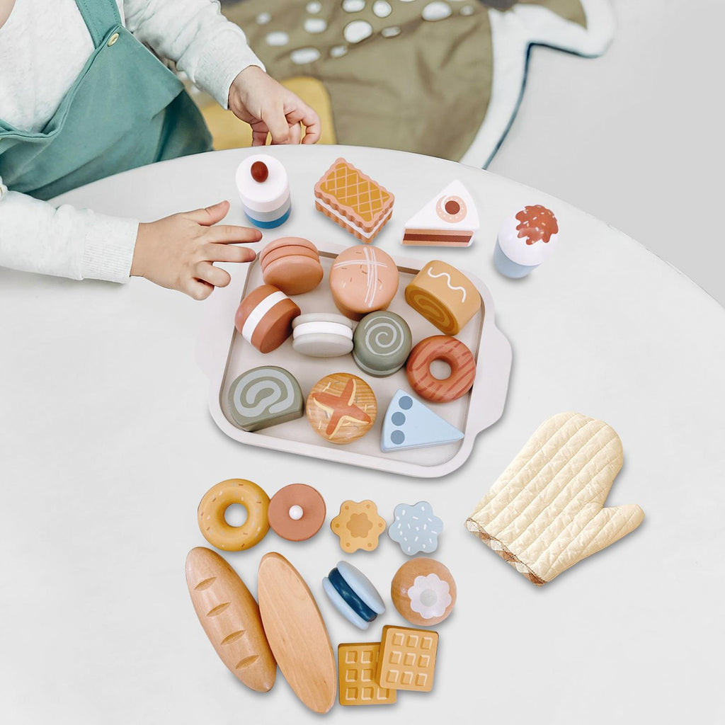【Developmental】: Wood Bakery Playset, children can learn to cook, exercise their hands on ability and fine motor skills.