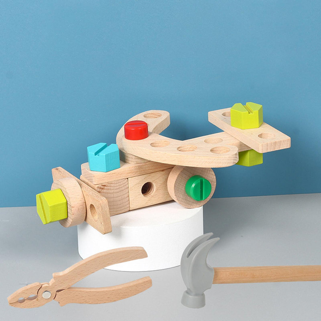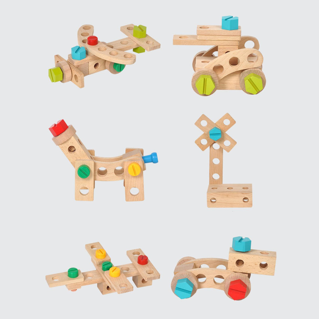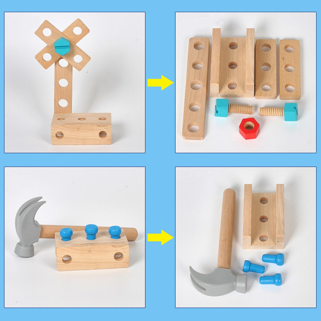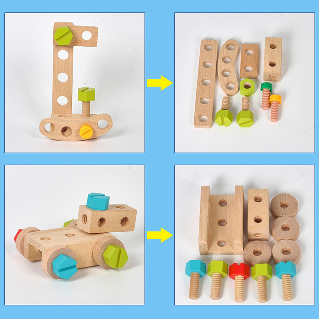 【Package Included】Wooden kids tool set includes screws, nuts, harmmer, wrench, ruler, screwdriver, etc. Babies can combine parts by themselves to cultivate children's understanding and ability to use tools.