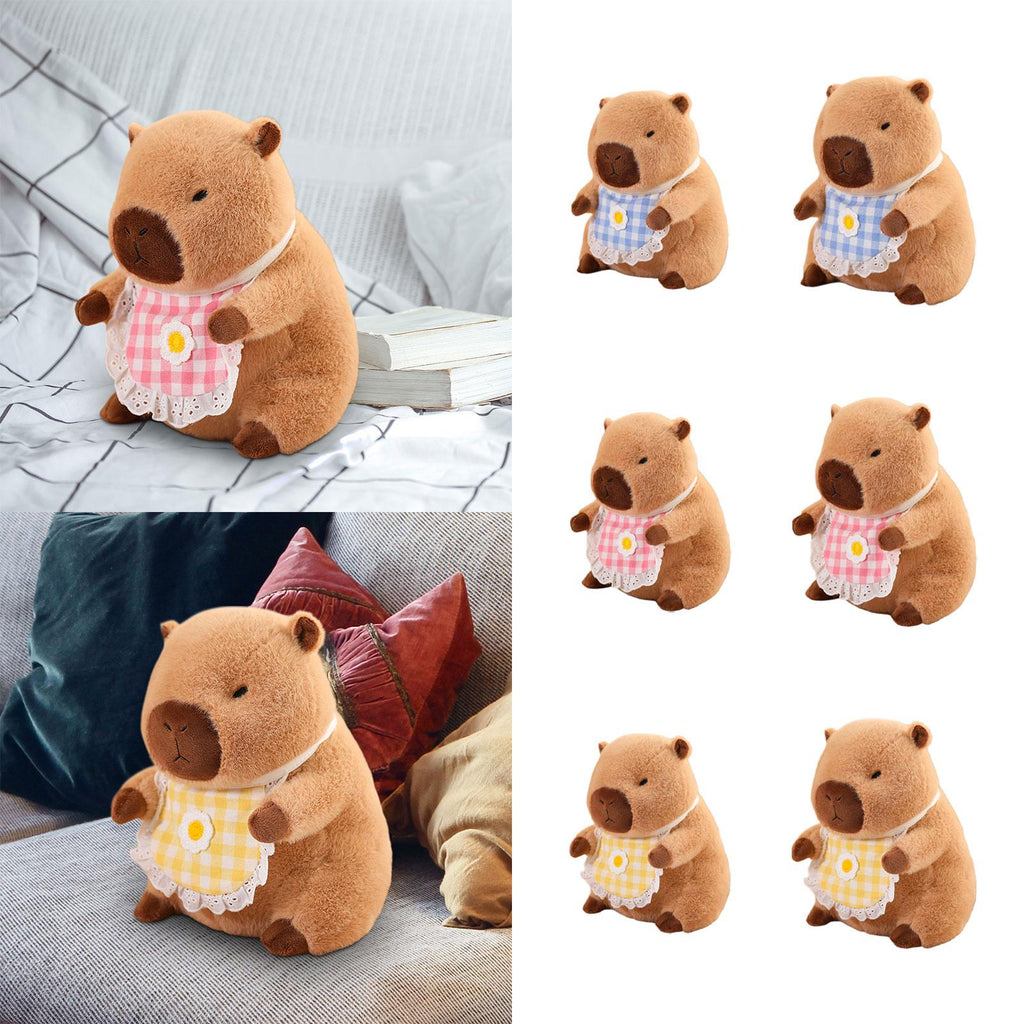 【Feature】: This is a cute Capybara plush toy with bib, designed with attention to detail, making you feel like you're seeing a real capybara. Its presence will surely add a touch of fun and warmth to your life.