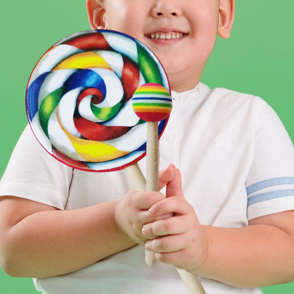 【Cartoonl】: Cartoon hand percussion drum, lolly shape, very cute, loved by children, easy to play help to improve kids self confidence.