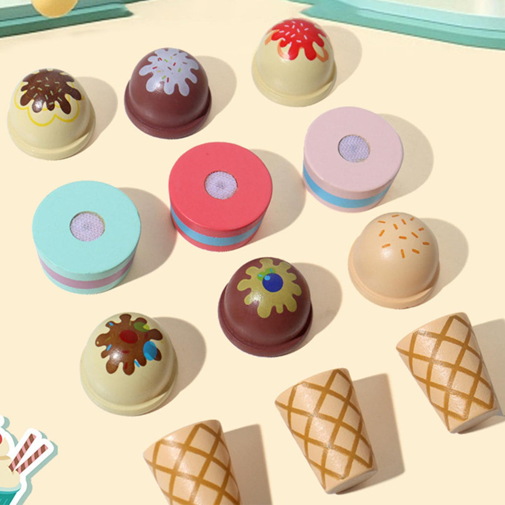 【Smooth Edges】: The Wooden Ice Cream Toys are made of quality wood, meticulously sanded for an unique finish—security for little hands during playtimes