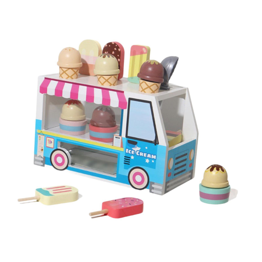 【Charm Cart Design】: The kid friendly wooden cart mimics a real ice cream truck with open storage to teach tidiness and organization