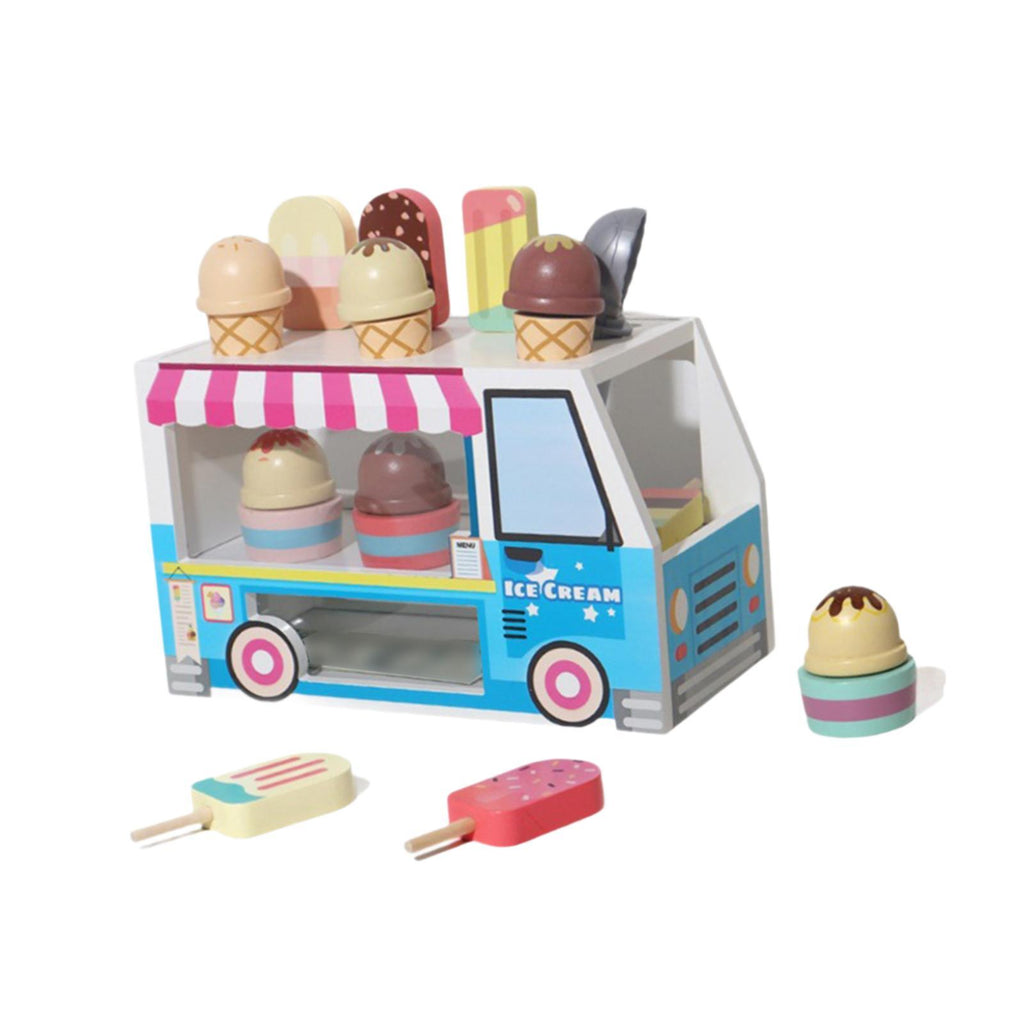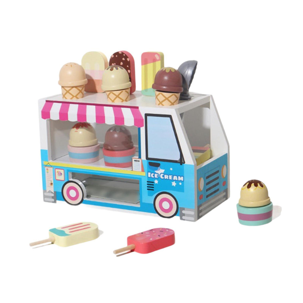 Maxbell Wooden Ice Cream Cart Toys Ice Cream Shop Playset for Kids DIY Holiday Gifts