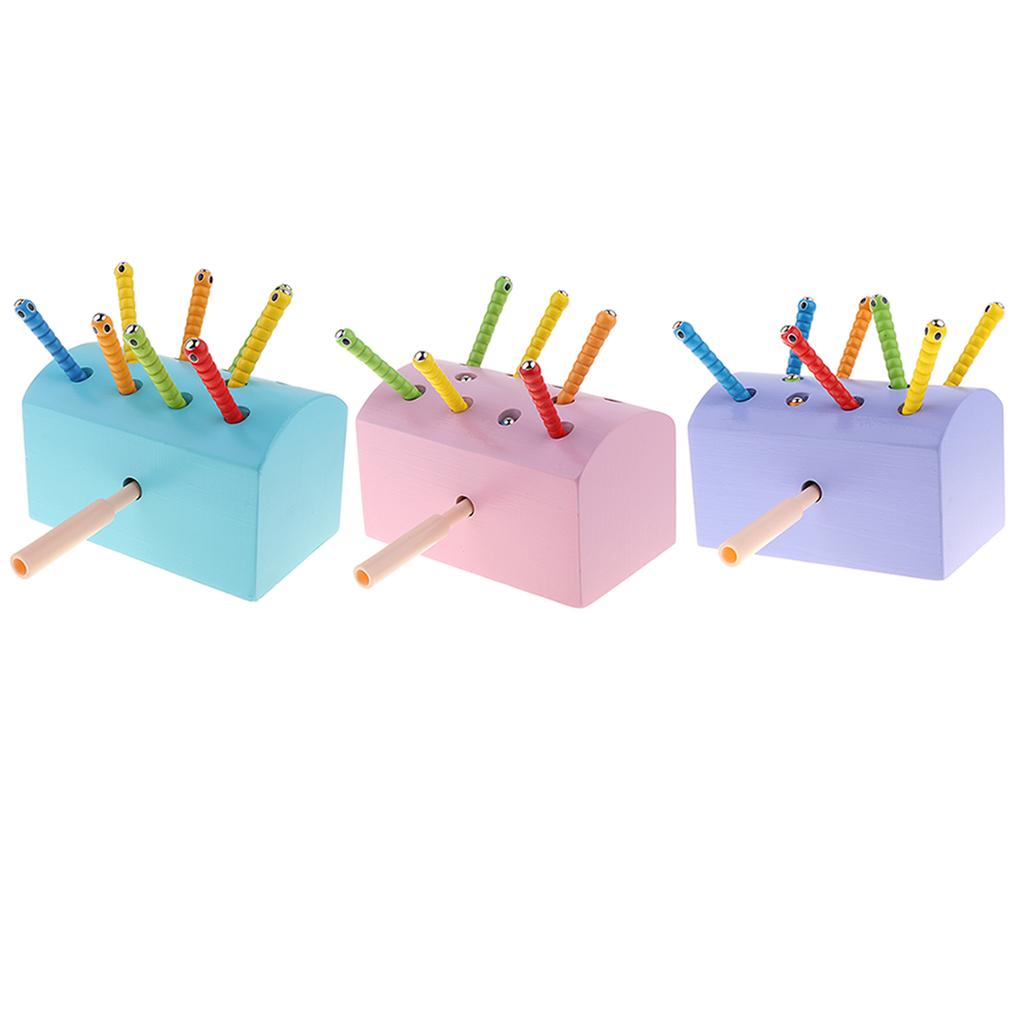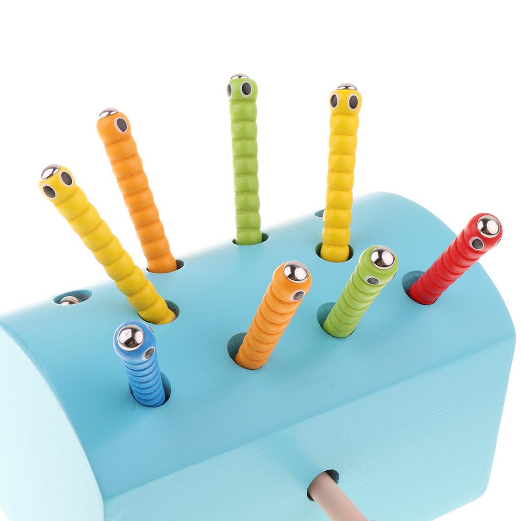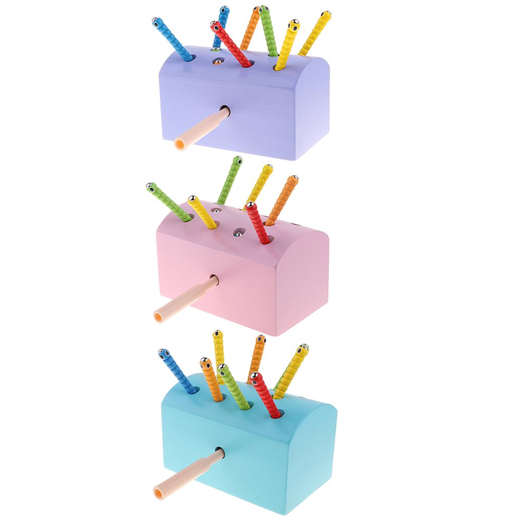 Wooden magnetic fishing worms game catch insects pretend play toys kids montessori educational toys