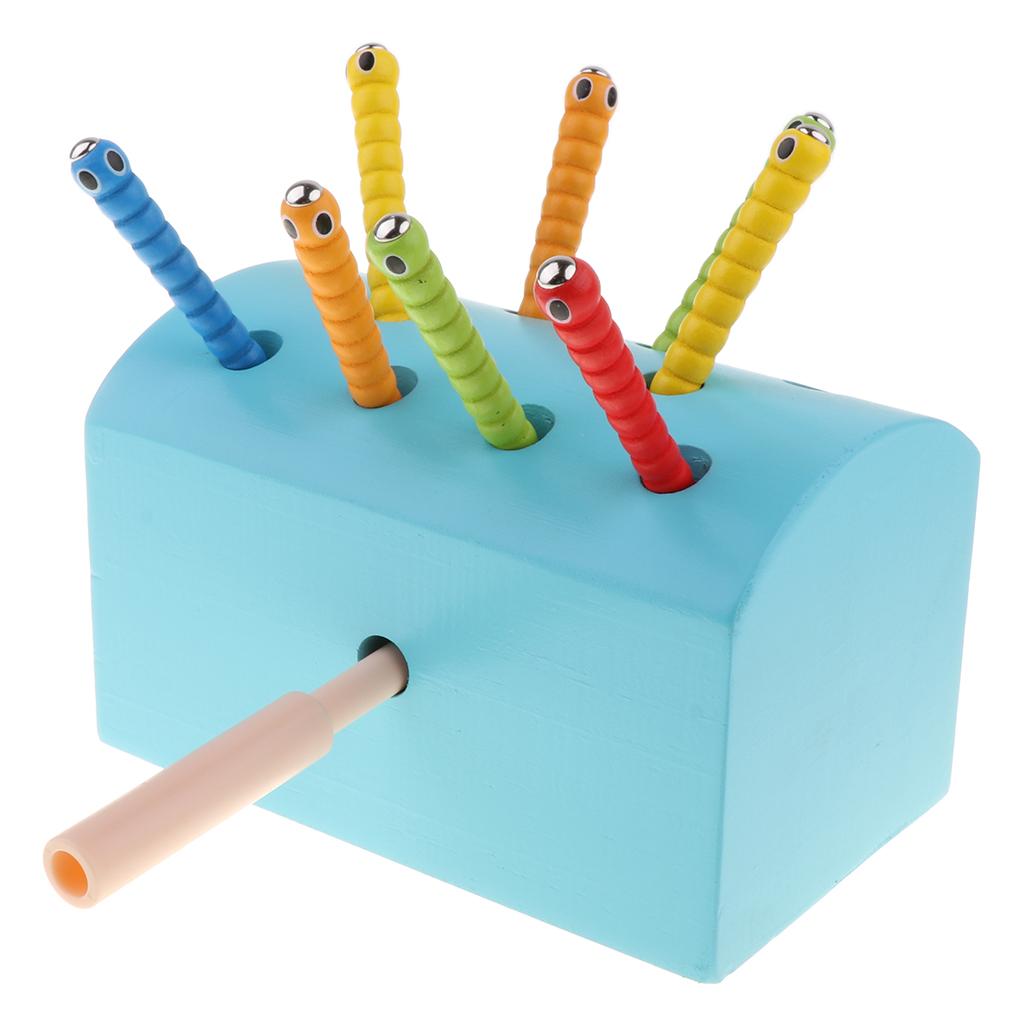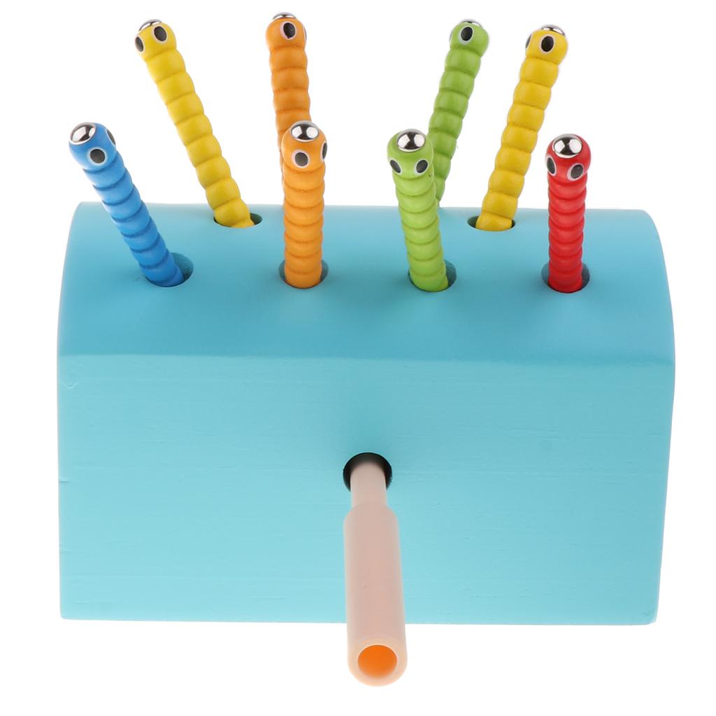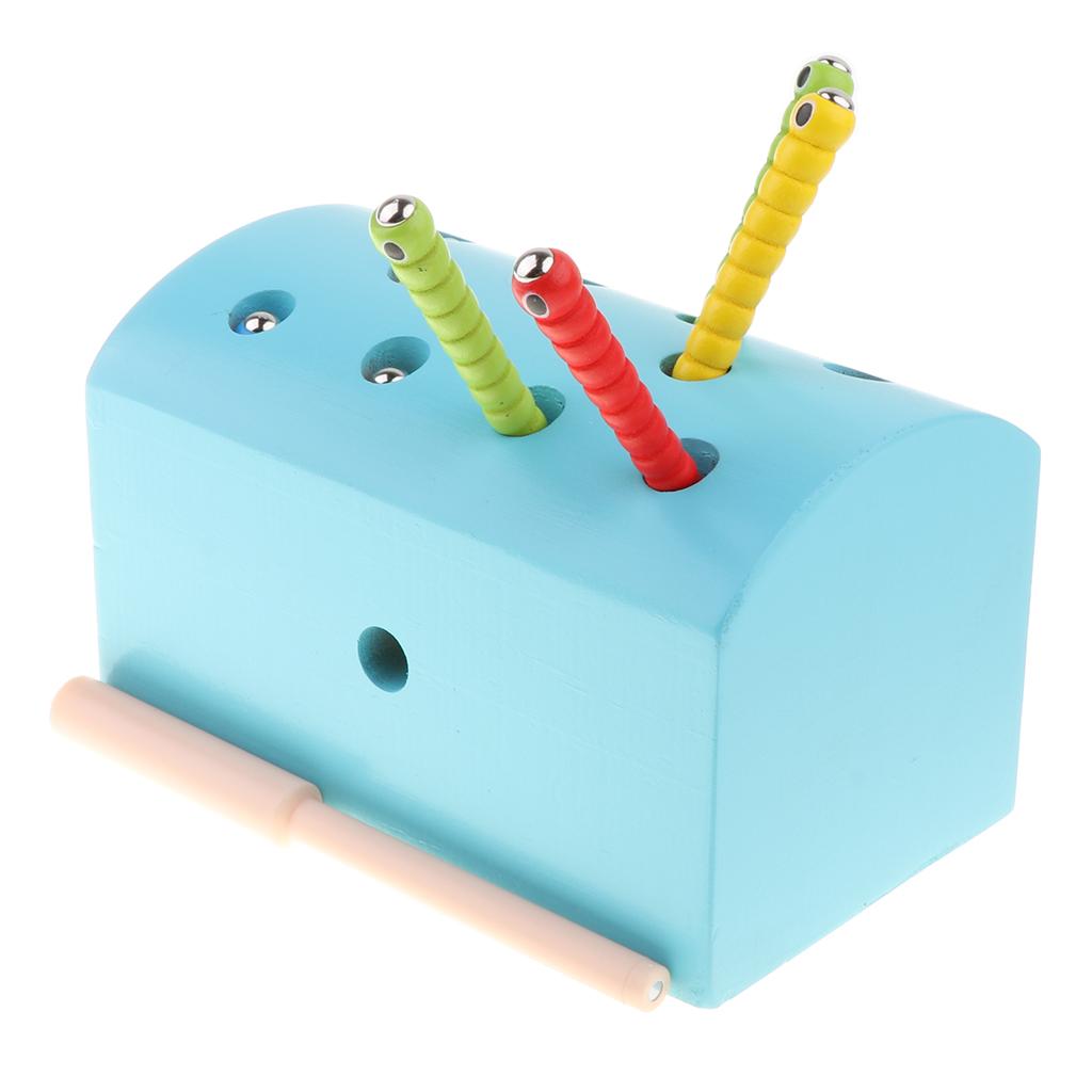 Wooden Magnetic Catch Insect Game Toys Kid Montessori Educational Toy Blue