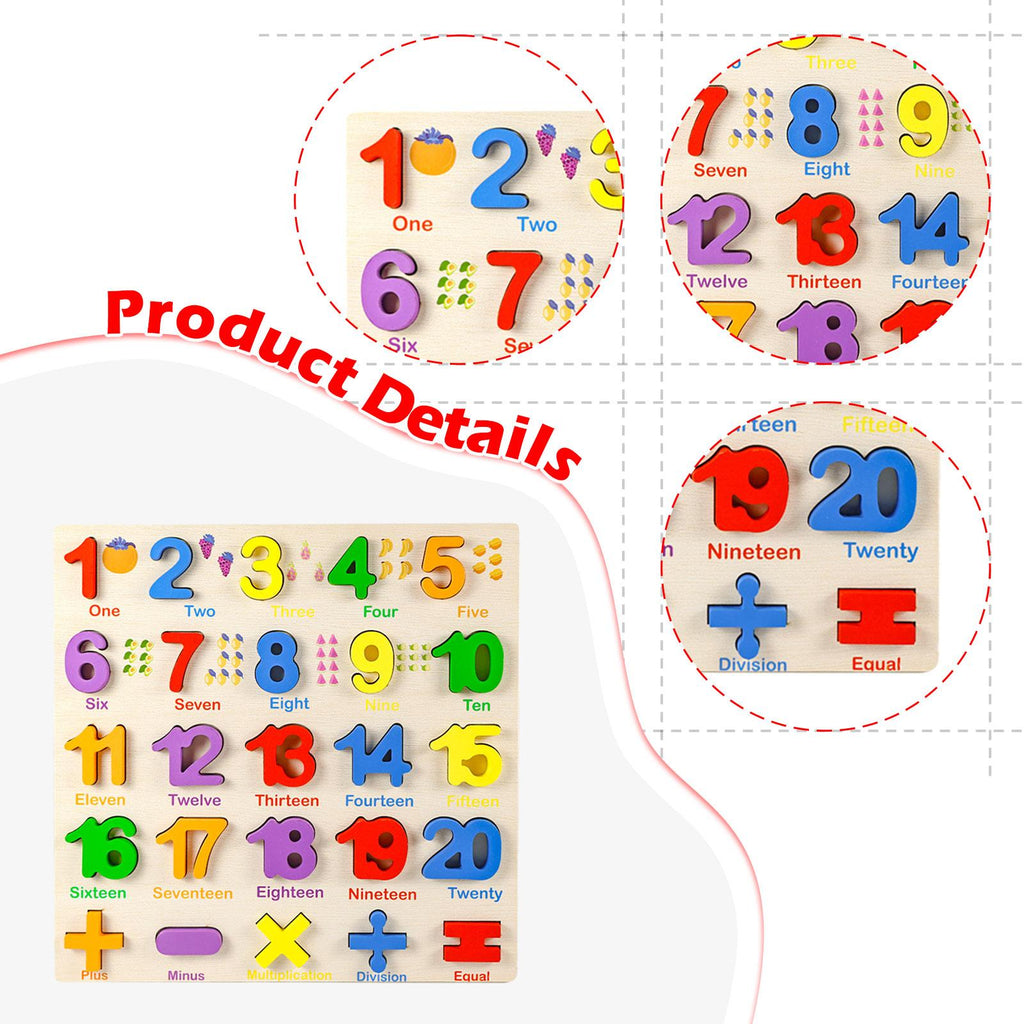 Maxbell Wooden Puzzle Learning Educational Toys for 3 4 5 Year Old Kids Kindergarten Number Puzzle