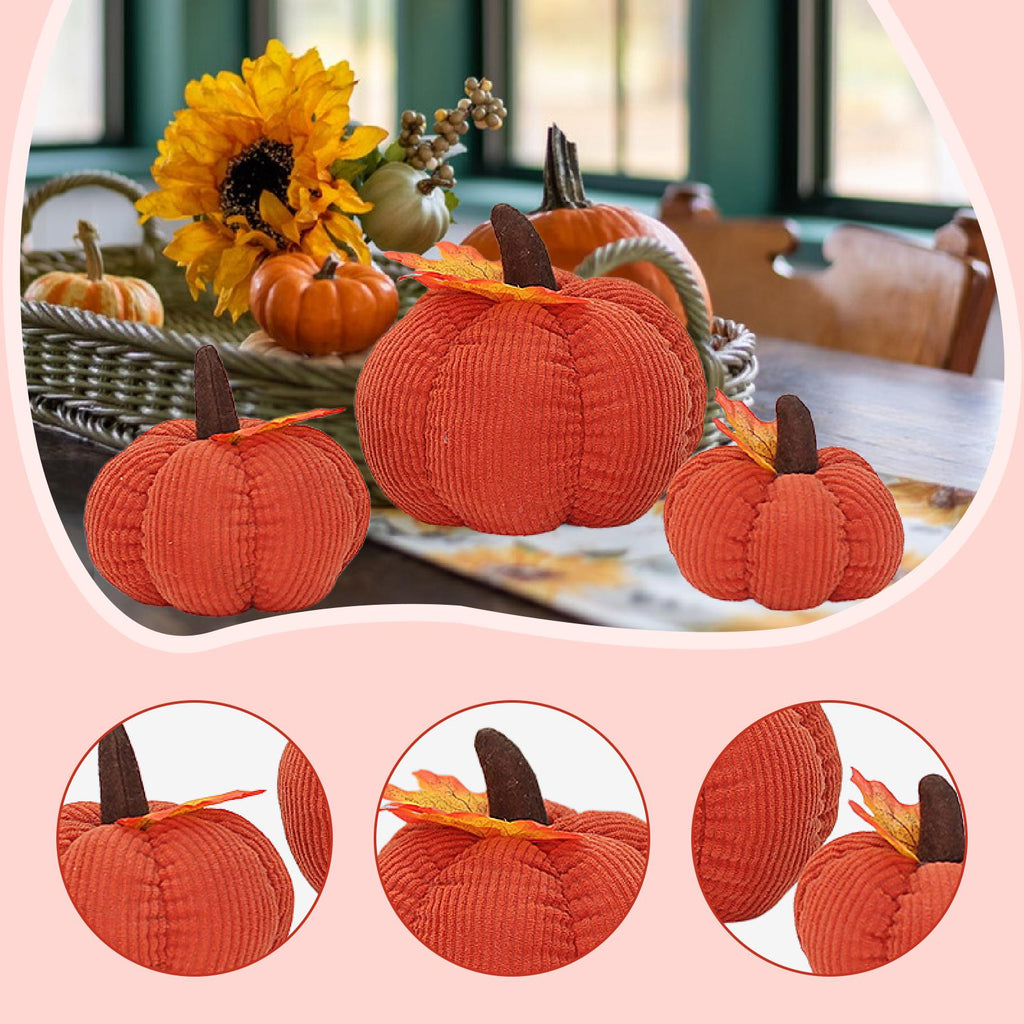 【Quality & Size】: Package include 3pcs velvet pumpkins in small 10x9cm, medium 12x11cm, and large 15x14cm sizes for layered seasonal displays