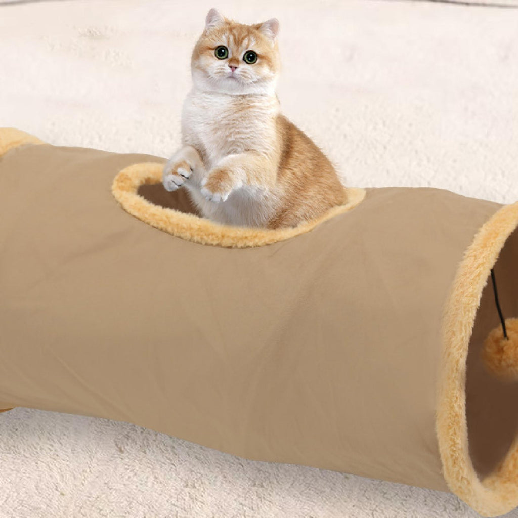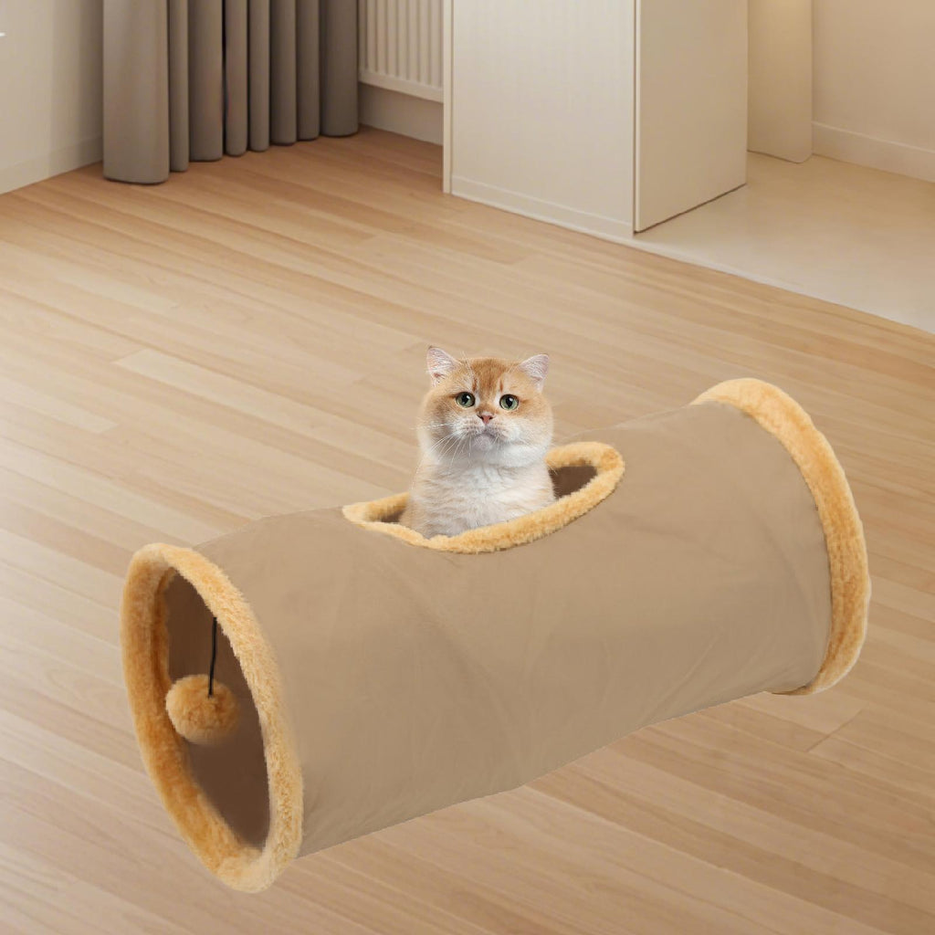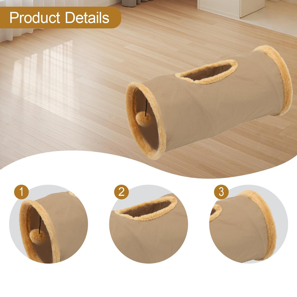 Maxbell Cat Tunnel for Indoor Cats Hideaway Kitten Cave Pet Supplies Funny with Ball Khaki