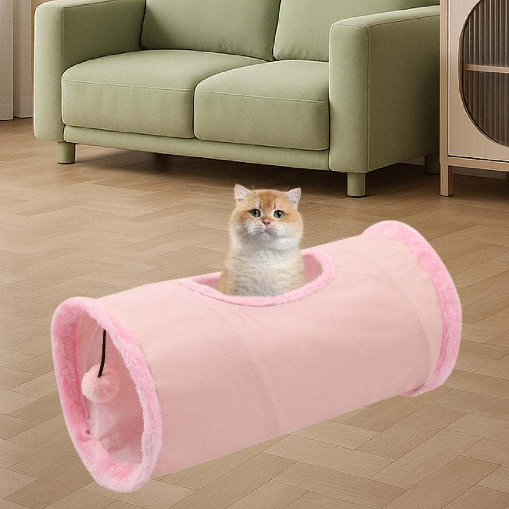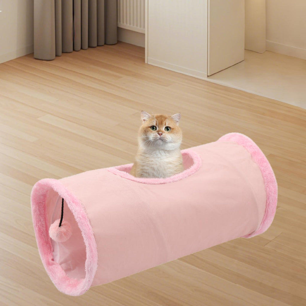 Maxbell Cat Tunnel for Indoor Cats Hideaway Kitten Cave Pet Supplies Funny with Ball Pink
