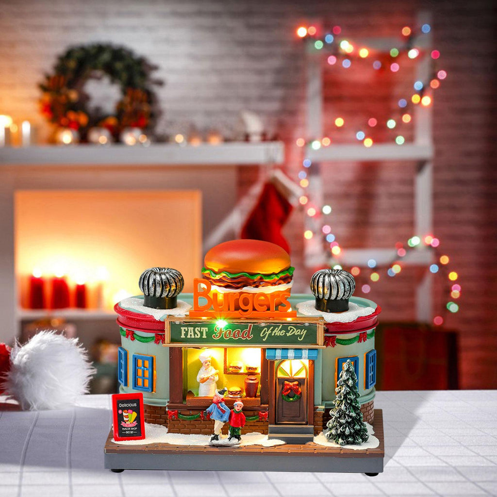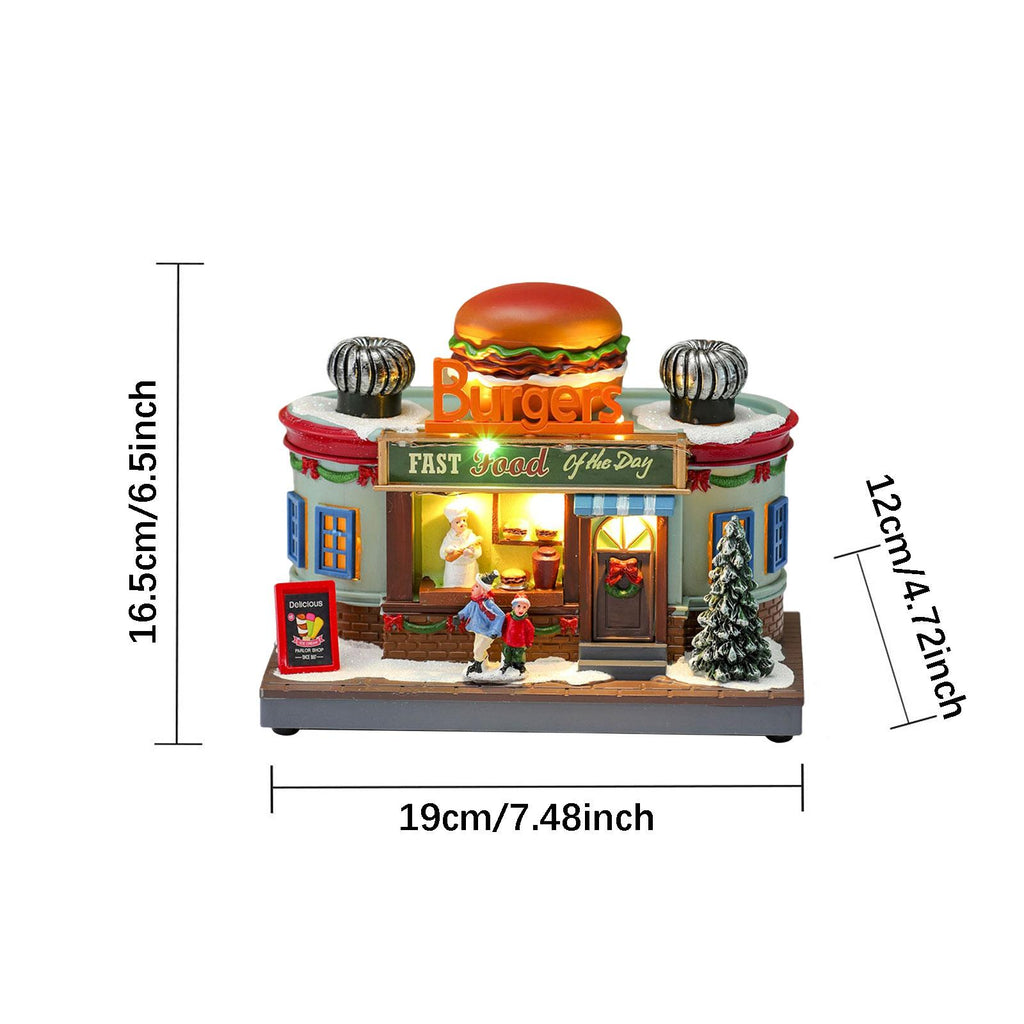 Maxbell Christmas Village House Statue LED Lighted Fast Food Figurine for Countertop Hamburger Shape