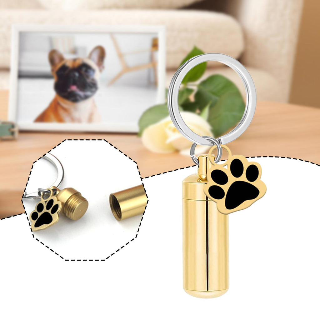 Maxbell Cremation Pet Urn Keychain Pet Dog Paw Print Keepsake Urn Key Chain Cylinder Gold