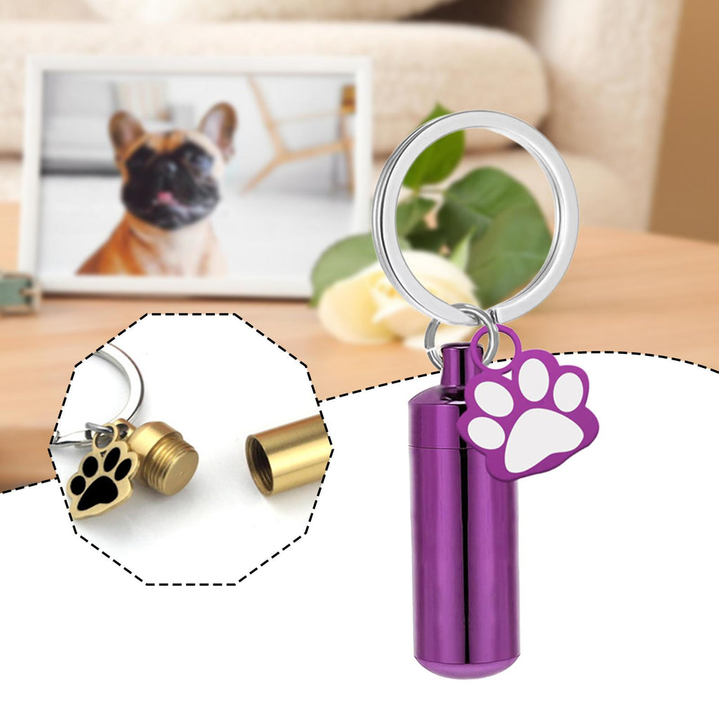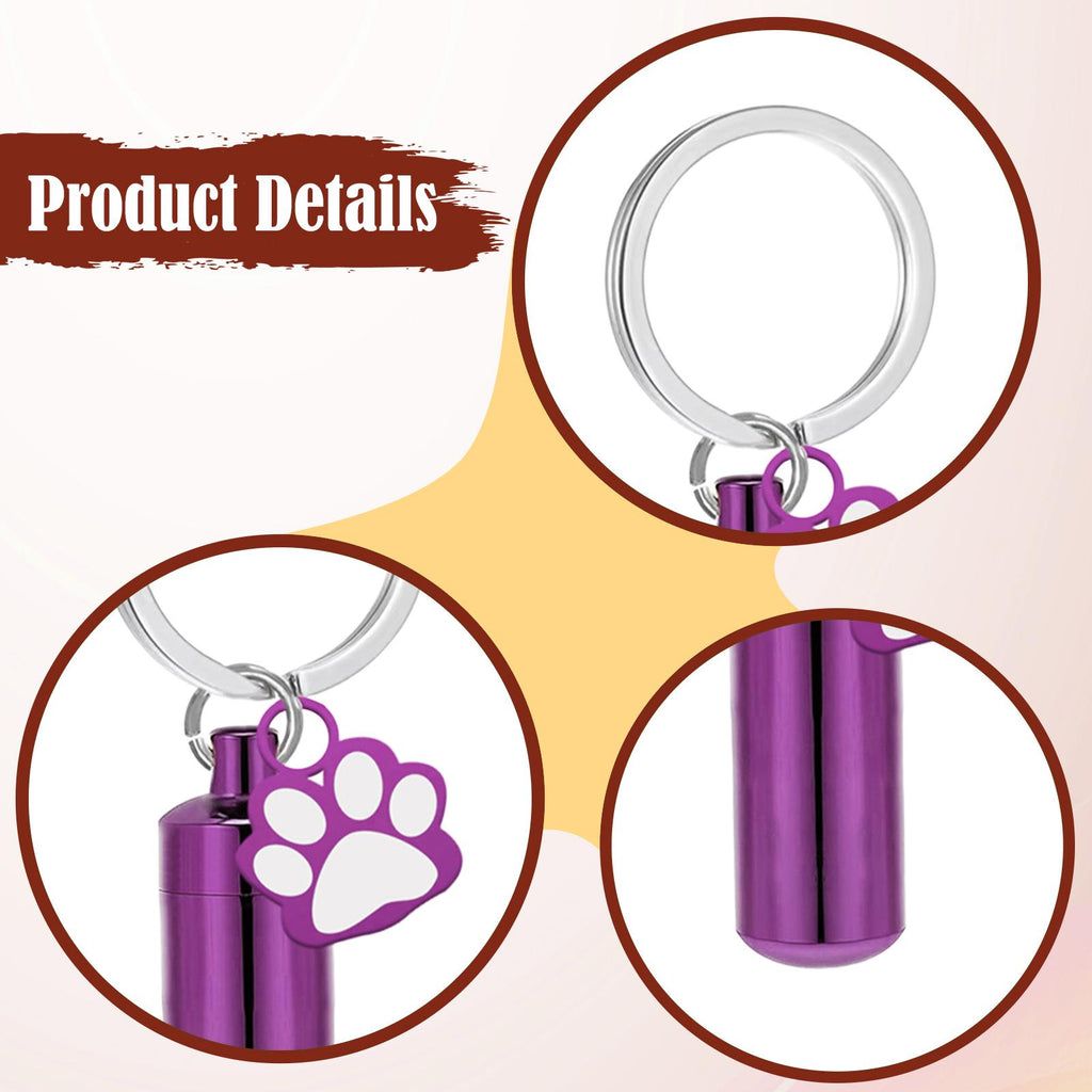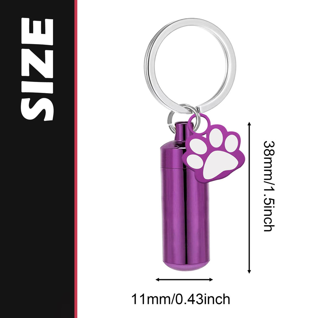 Maxbell Cremation Pet Urn Keychain Pet Dog Paw Print Keepsake Urn Key Chain Cylinder Purple