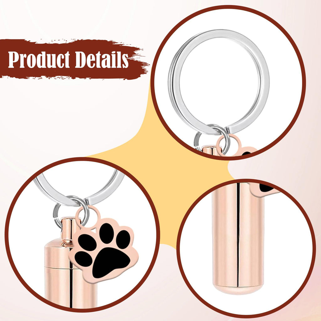 Maxbell Cremation Pet Urn Keychain Pet Dog Paw Print Keepsake Urn Key Chain Cylinder Rose Gold