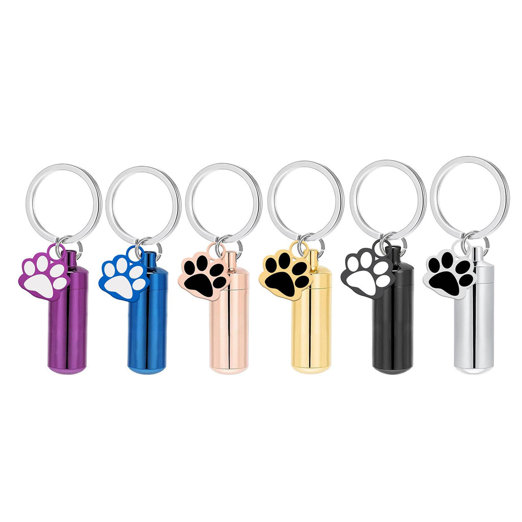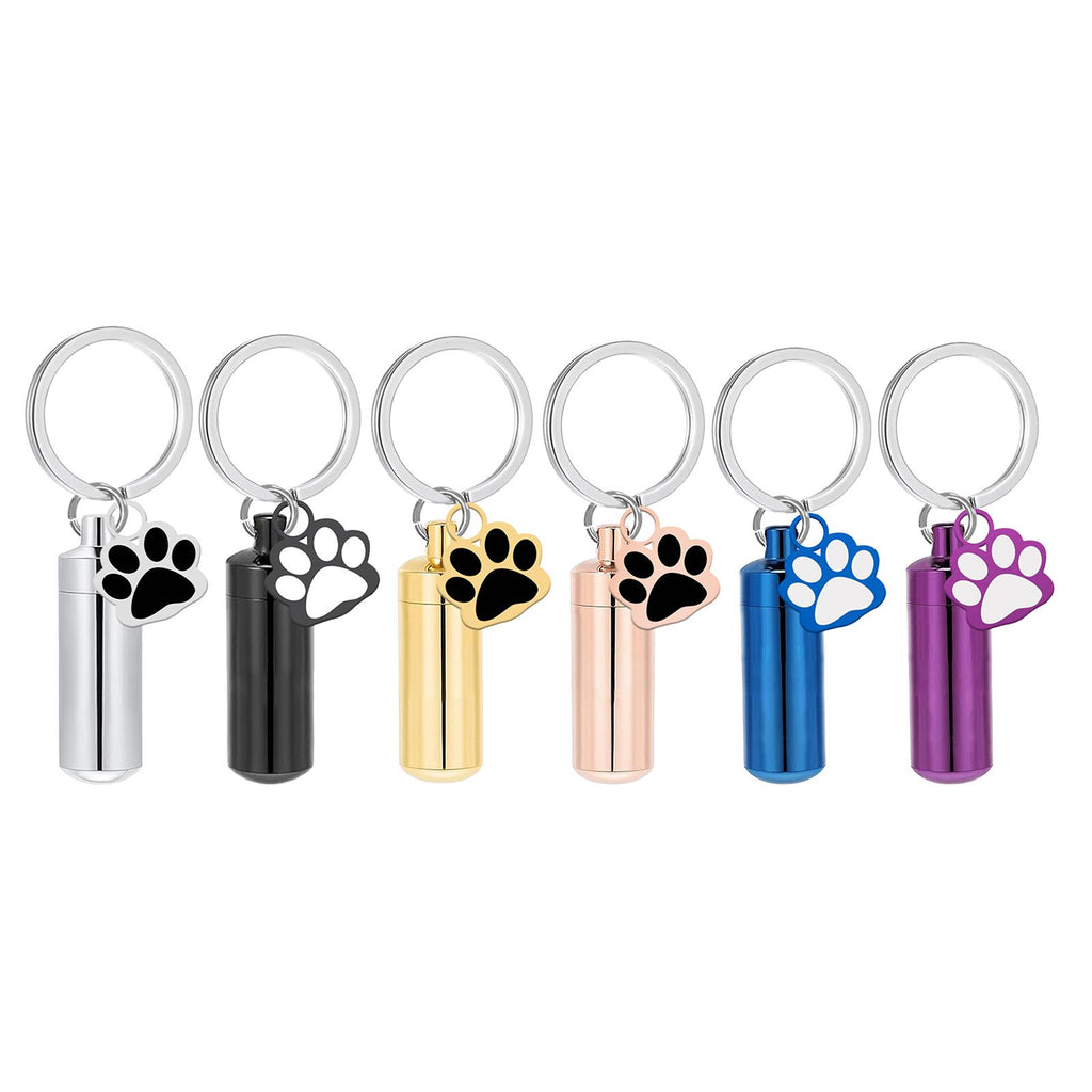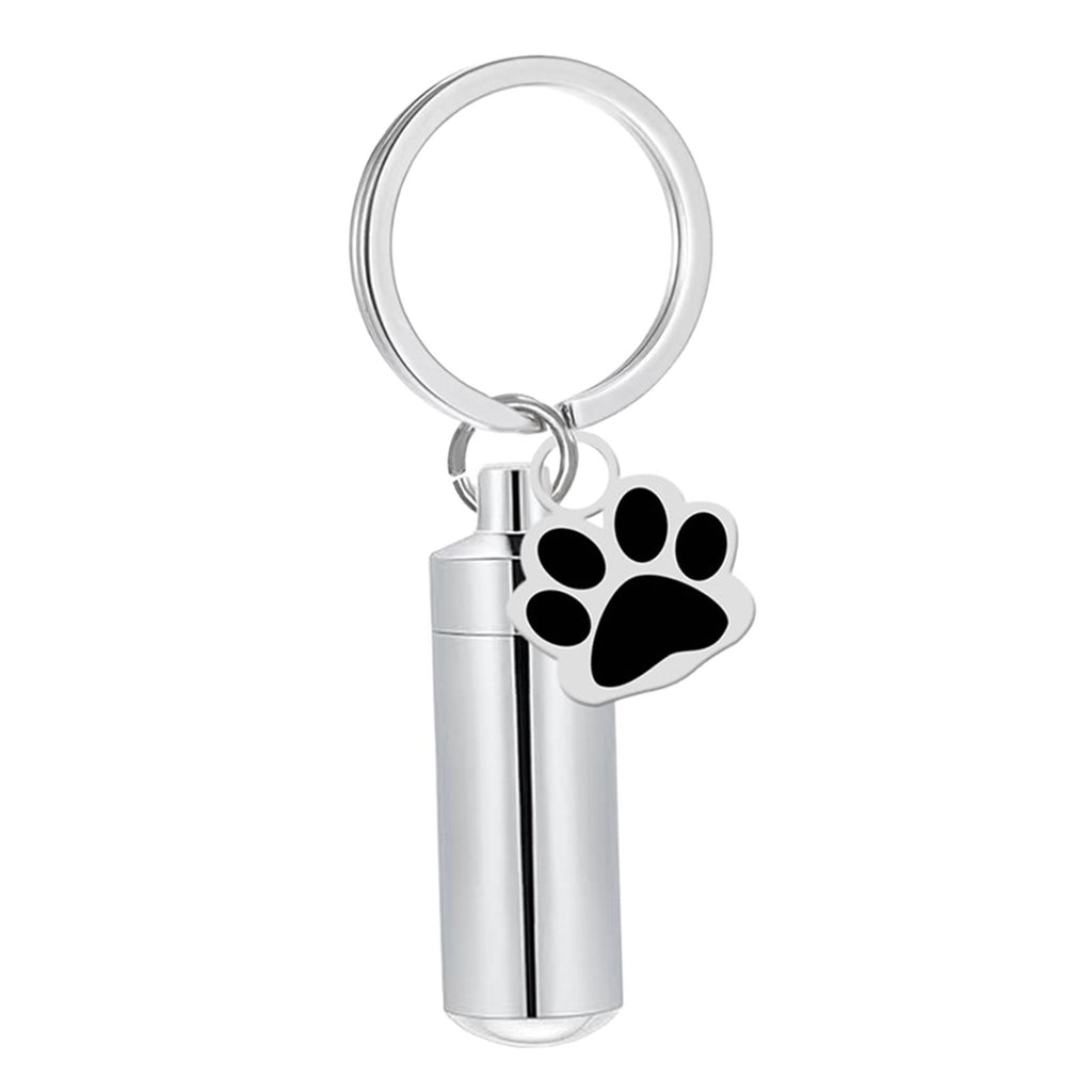 Maxbell Cremation Pet Urn Keychain Pet Dog Paw Print Keepsake Urn Key Chain Cylinder Silver