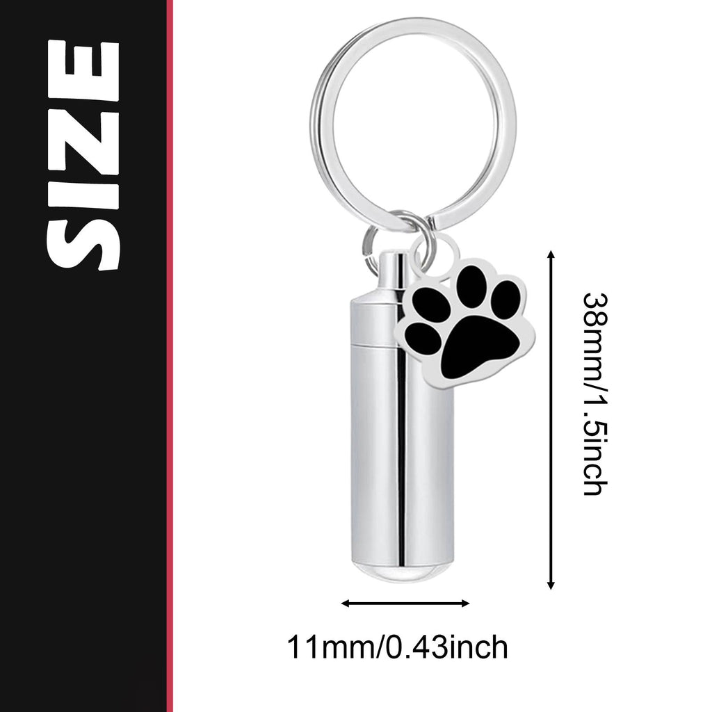 【Paw Print Memorial】: The elegant cylindrical design of the Memorial Cremation Keyring features a delicate paw print charm, symbolizing the cherished memories of your loyal companion