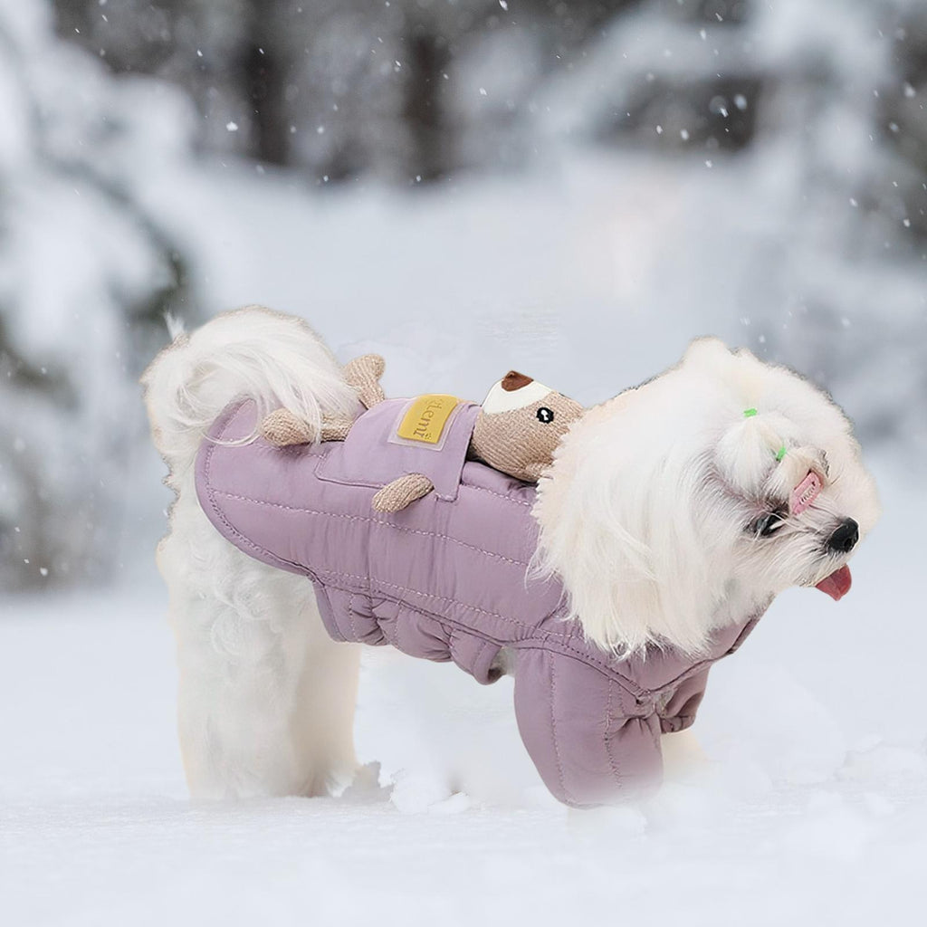 【Adorable Bear Accent】: Dog Warm Jacket Features a cute detachable bear decoration that adds charm and turns heads during walks