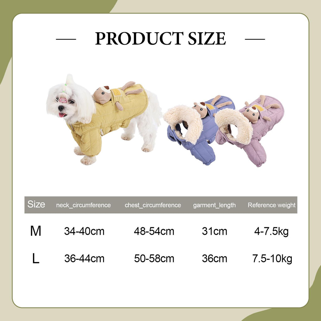 【Adorable Bear Accent】: Dog Warm Jacket Features a cute detachable bear decoration that adds charm and turns heads during walks