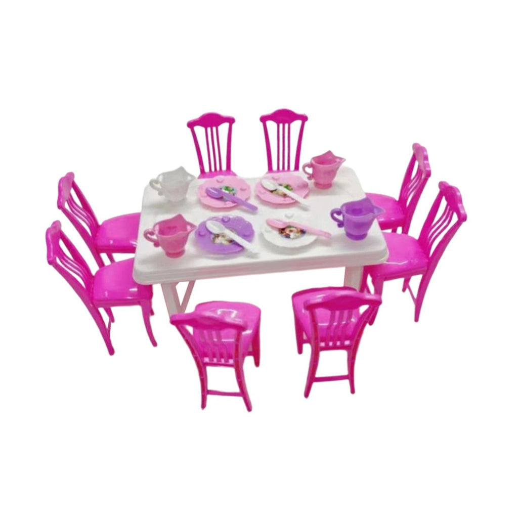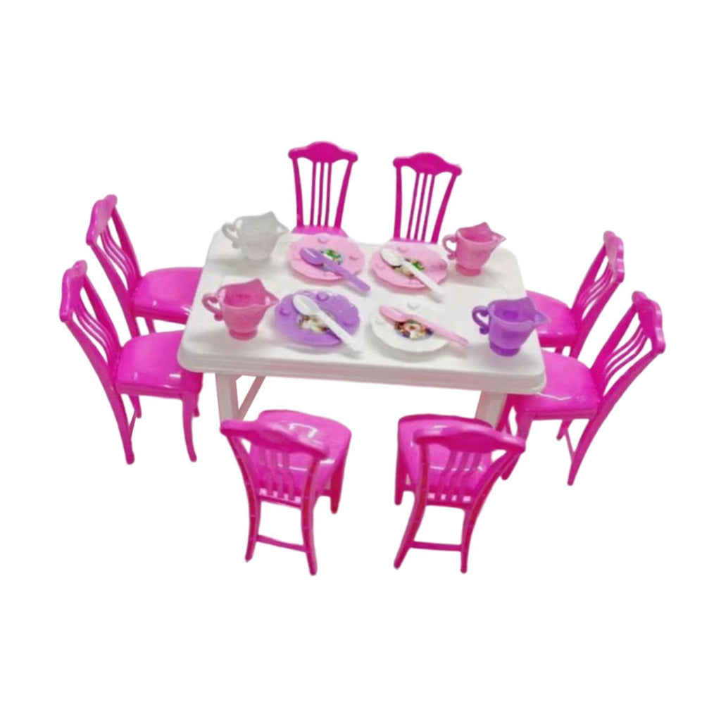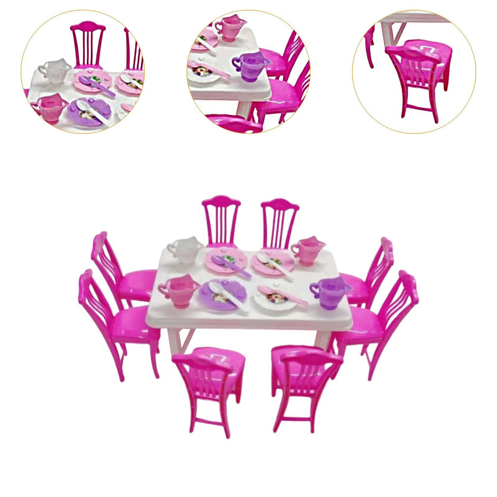 Maxbell Dollhouse Decoration Dinner Table Chair Set Mini Dinner Table for 16cm Dolls