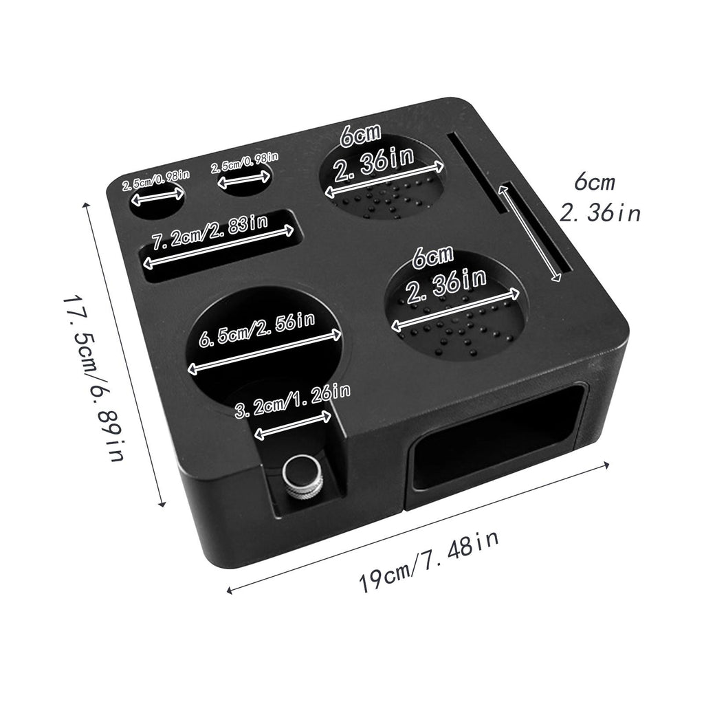 【Multifunction and convenient】: Espresso Tamping Station has a removable compact drawer that can easily store sintered parts, powder bowls and filter paper. It is equipped with two accessories that are universal 51/53/58 coffee machine handles are used